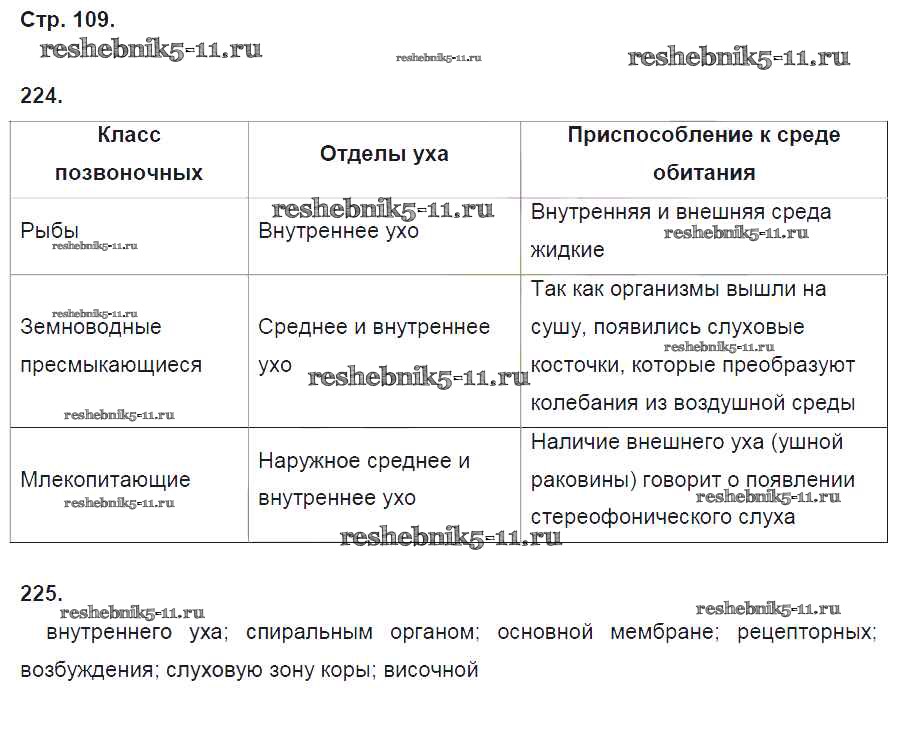 Готовая домашняя работа с ответами по Биологии за 8 класс Колесов, Маш, Беляев Рабочая тетрадь УМК Дрофа 2018 ФГОС - Страницы 109