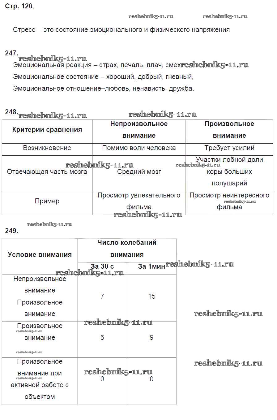 Готовая домашняя работа с ответами по Биологии за 8 класс Колесов, Маш, Беляев Рабочая тетрадь УМК Дрофа 2018 ФГОС - Страницы 120
