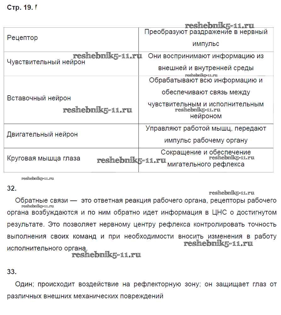 Готовая домашняя работа с ответами по Биологии за 8 класс Колесов, Маш, Беляев Рабочая тетрадь УМК Дрофа 2018 ФГОС - Страницы 19