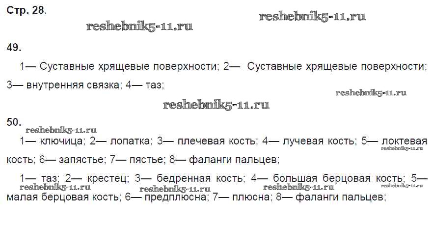 Готовая домашняя работа с ответами по Биологии за 8 класс Колесов, Маш, Беляев Рабочая тетрадь УМК Дрофа 2018 ФГОС - Страницы 28