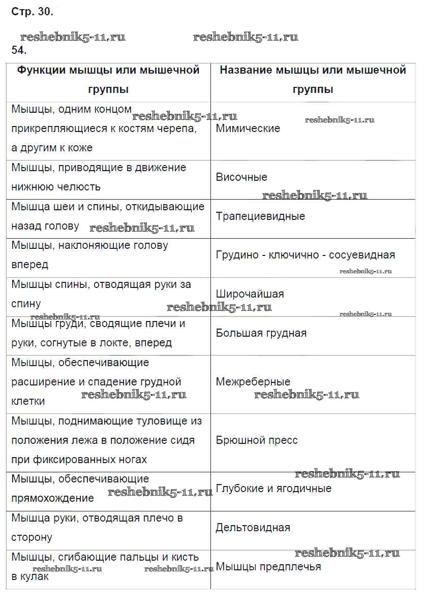 Готовая домашняя работа с ответами по Биологии за 8 класс Колесов, Маш, Беляев Рабочая тетрадь УМК Дрофа 2018 ФГОС - Страницы 30