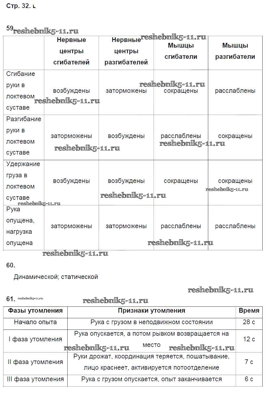 Готовая домашняя работа с ответами по Биологии за 8 класс Колесов, Маш, Беляев Рабочая тетрадь УМК Дрофа 2018 ФГОС - Страницы 32