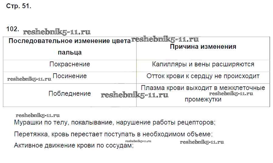 Готовая домашняя работа с ответами по Биологии за 8 класс Колесов, Маш, Беляев Рабочая тетрадь УМК Дрофа 2018 ФГОС - Страницы 51