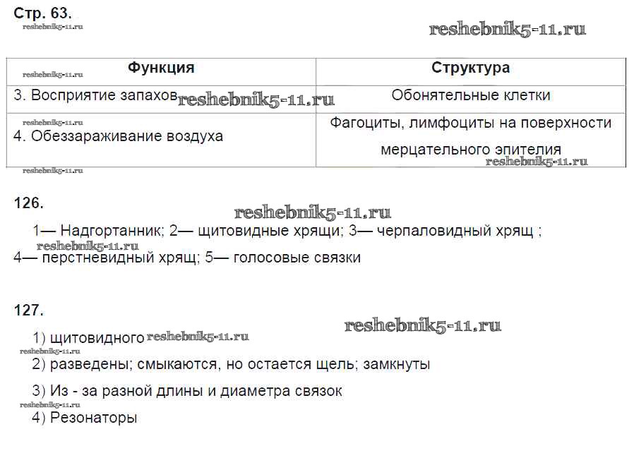 Готовая домашняя работа с ответами по Биологии за 8 класс Колесов, Маш, Беляев Рабочая тетрадь УМК Дрофа 2018 ФГОС - Страницы 63