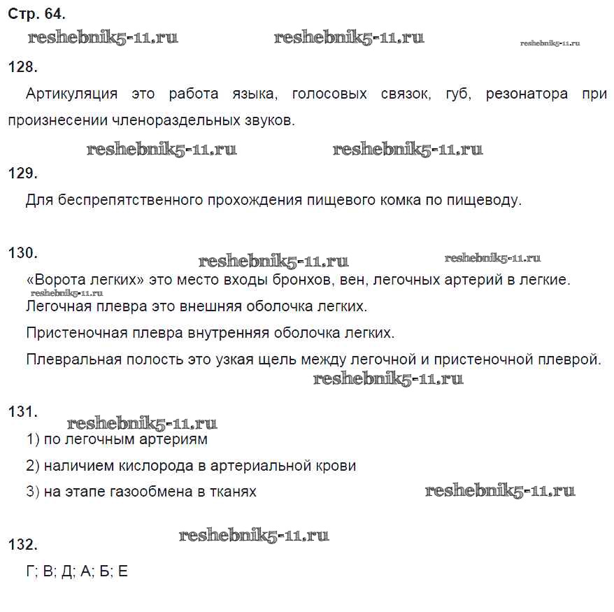 Готовая домашняя работа с ответами по Биологии за 8 класс Колесов, Маш, Беляев Рабочая тетрадь УМК Дрофа 2018 ФГОС - Страницы 64
