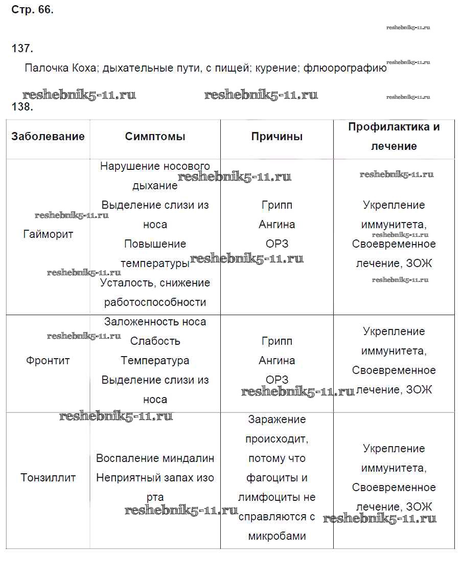 Готовая домашняя работа с ответами по Биологии за 8 класс Колесов, Маш, Беляев Рабочая тетрадь УМК Дрофа 2018 ФГОС - Страницы 66