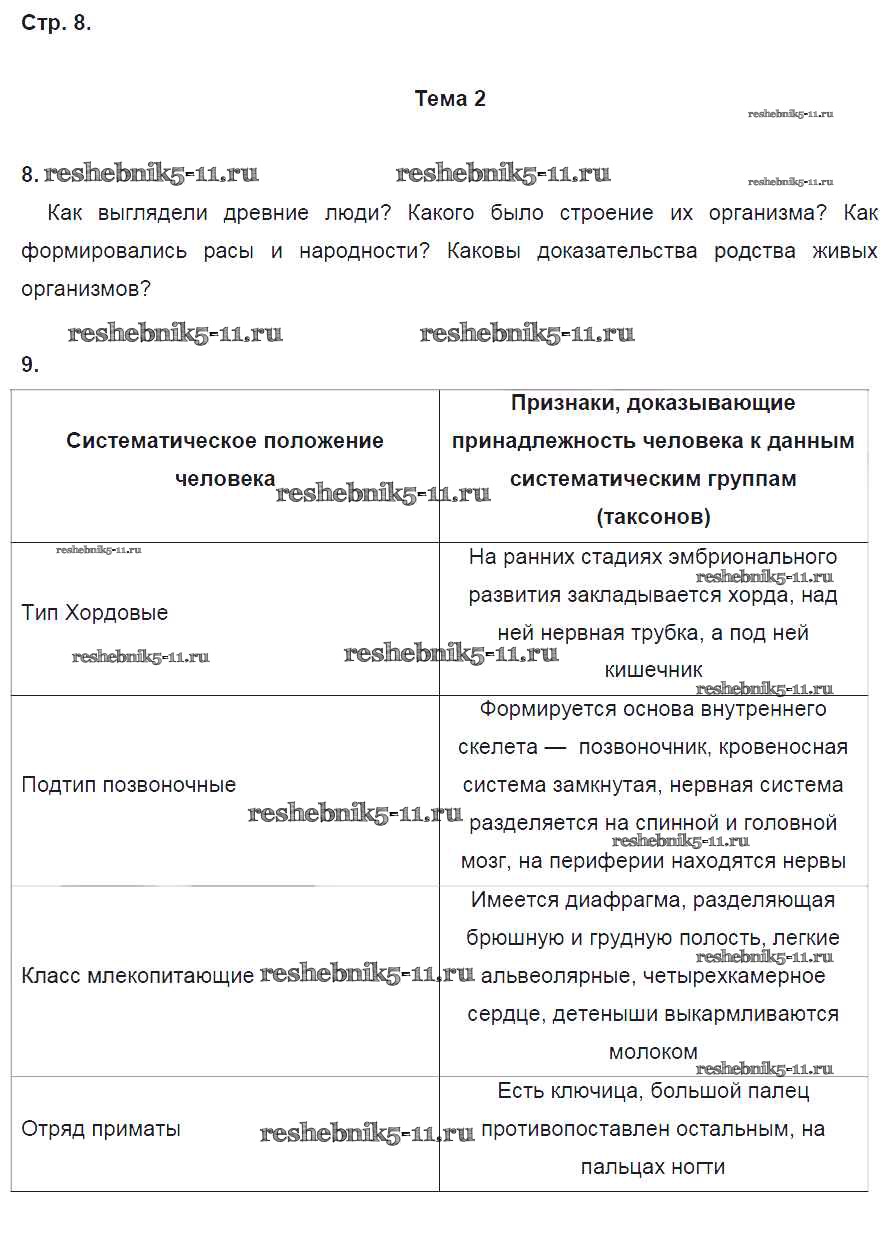 Готовая домашняя работа с ответами по Биологии за 8 класс Колесов, Маш, Беляев Рабочая тетрадь УМК Дрофа 2018 ФГОС - Страницы 8