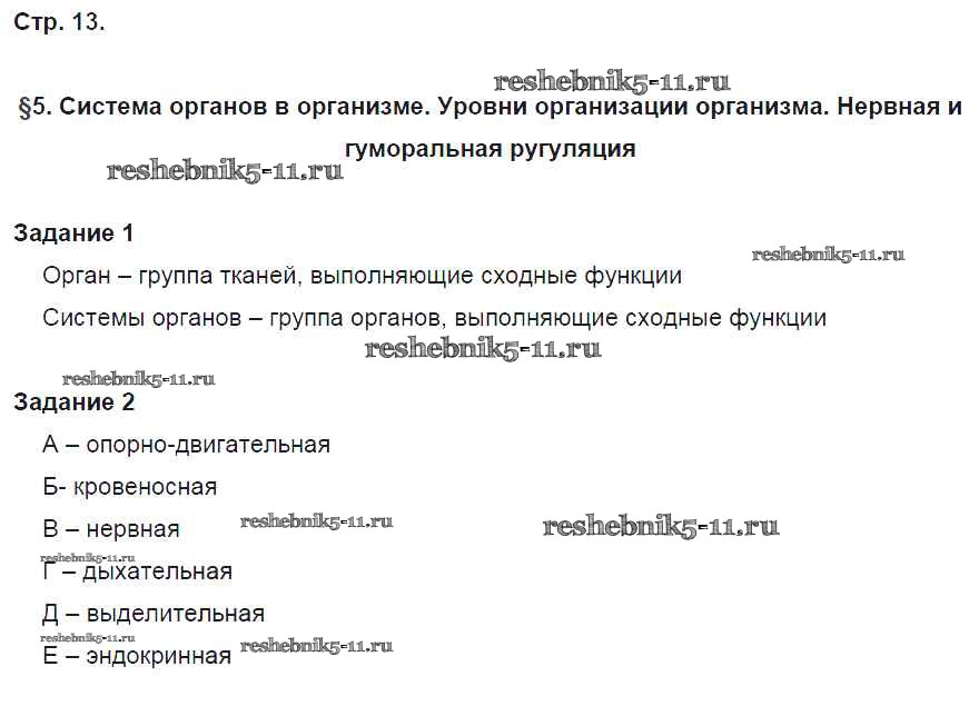Готовая домашняя работа с ответами по Биологии за 8 класс Маш, Драгомилов Рабочая тетрадь Алгоритм успеха Часть 1, 2 Вентана-граф 2019 ФГОС - Часть 1. Страницы 13