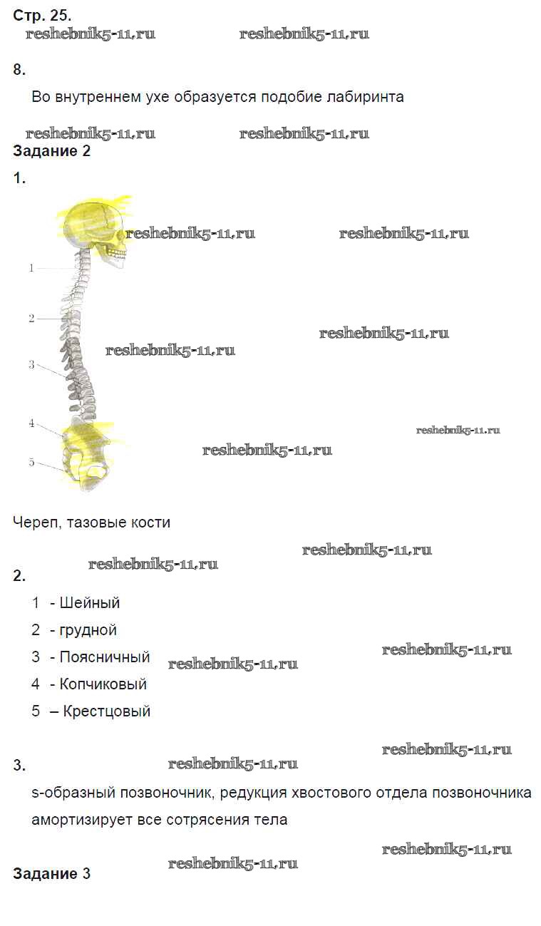 Готовая домашняя работа с ответами по Биологии за 8 класс Маш, Драгомилов Рабочая тетрадь Алгоритм успеха Часть 1, 2 Вентана-граф 2019 ФГОС - Часть 1. Страницы 25
