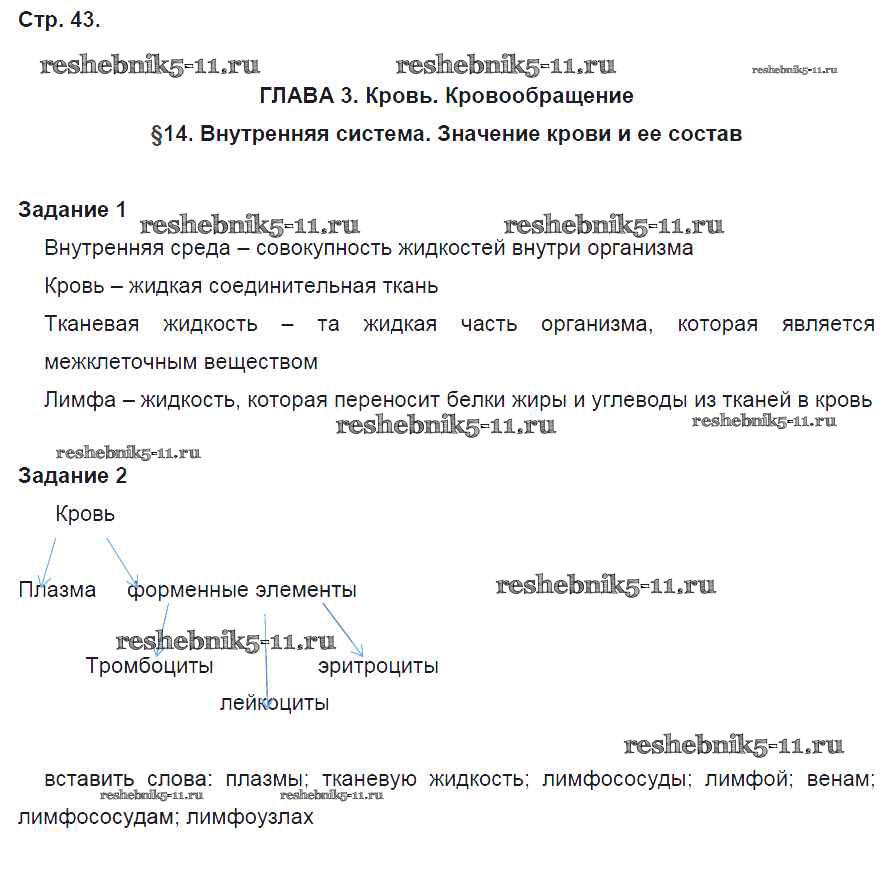 Готовая домашняя работа с ответами по Биологии за 8 класс Маш, Драгомилов Рабочая тетрадь Алгоритм успеха Часть 1, 2 Вентана-граф 2019 ФГОС - Часть 1. Страницы 43