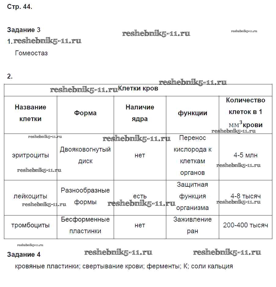 Готовая домашняя работа с ответами по Биологии за 8 класс Маш, Драгомилов Рабочая тетрадь Алгоритм успеха Часть 1, 2 Вентана-граф 2019 ФГОС - Часть 1. Страницы 44