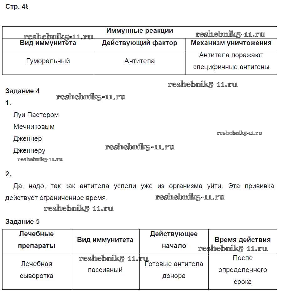 Готовая домашняя работа с ответами по Биологии за 8 класс Маш, Драгомилов Рабочая тетрадь Алгоритм успеха Часть 1, 2 Вентана-граф 2019 ФГОС - Часть 1. Страницы 48