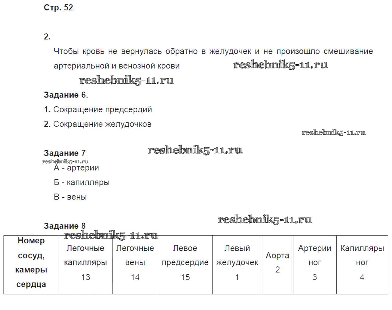 Готовая домашняя работа с ответами по Биологии за 8 класс Маш, Драгомилов Рабочая тетрадь Алгоритм успеха Часть 1, 2 Вентана-граф 2019 ФГОС - Часть 1. Страницы 52