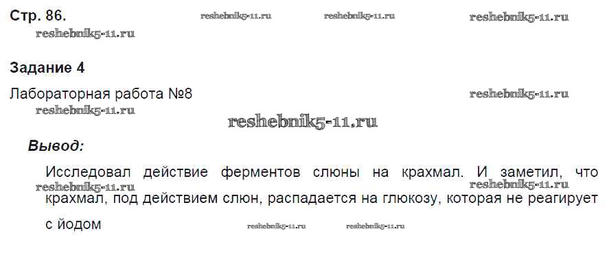 Готовая домашняя работа с ответами по Биологии за 8 класс Маш, Драгомилов Рабочая тетрадь Алгоритм успеха Часть 1, 2 Вентана-граф 2019 ФГОС - Часть 1. Страницы 86