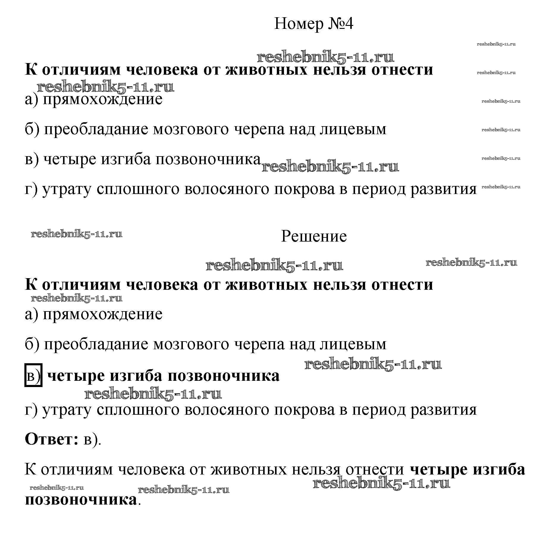 Готовая домашняя работа с ответами по Биологии за 8 класс Пасечник, Швецов Рабочая тетрадь Линия жизни Просвещение 2019 ФГОС - Тестовый контроль 1 4