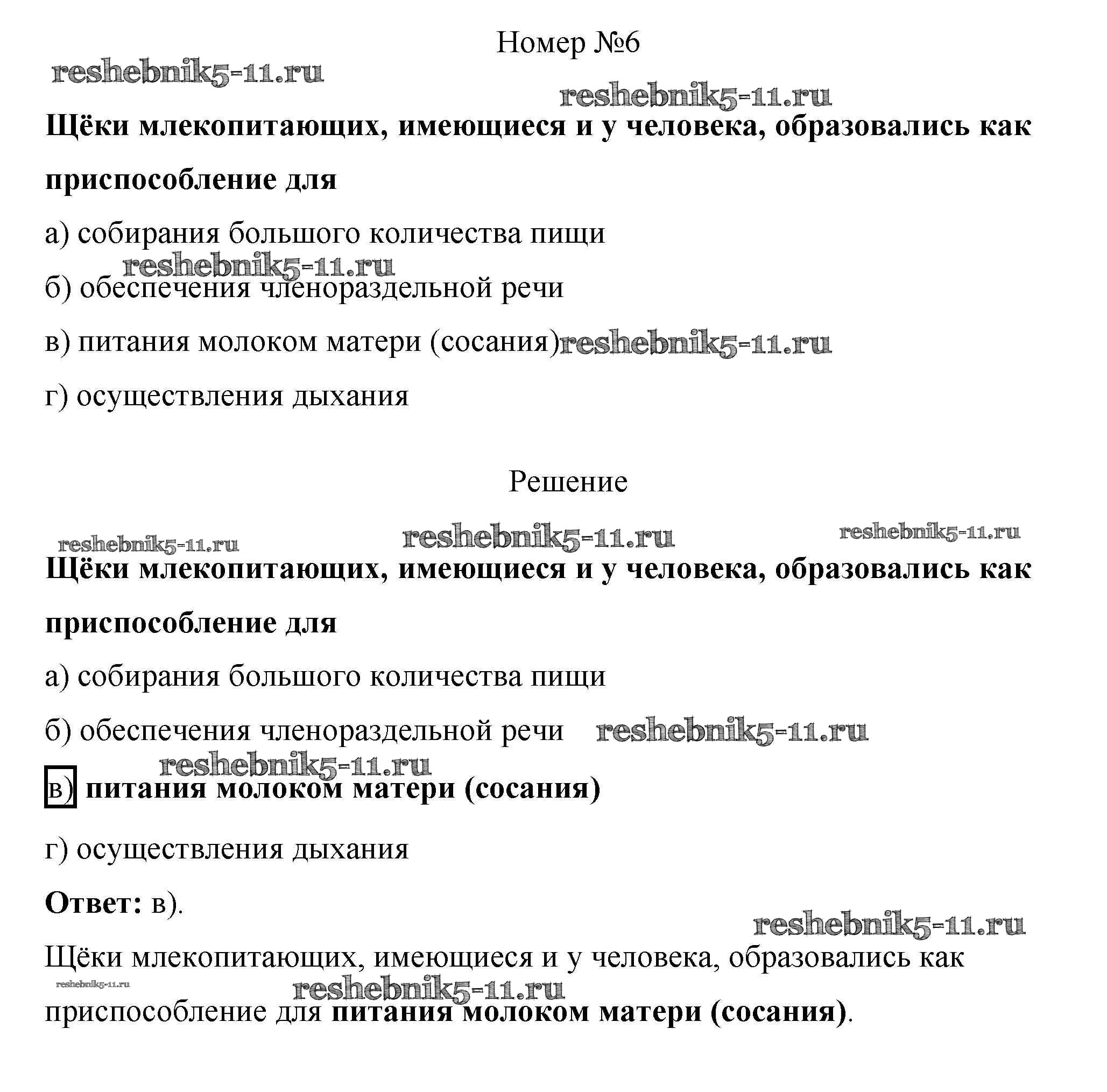 Готовая домашняя работа с ответами по Биологии за 8 класс Пасечник, Швецов Рабочая тетрадь Линия жизни Просвещение 2019 ФГОС - Тестовый контроль 1 6
