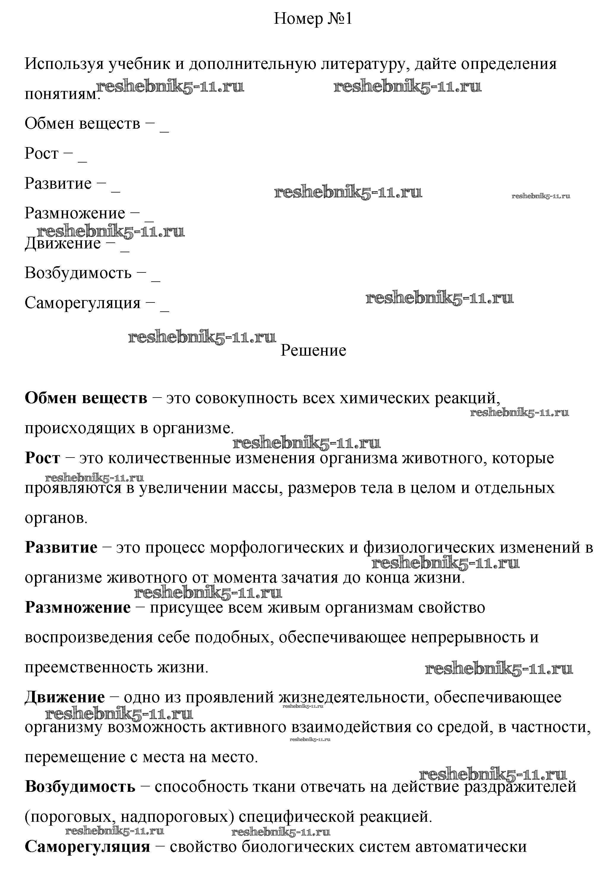 Решебник 1 / §6. регуляция процессов жизнедеятельности / 1