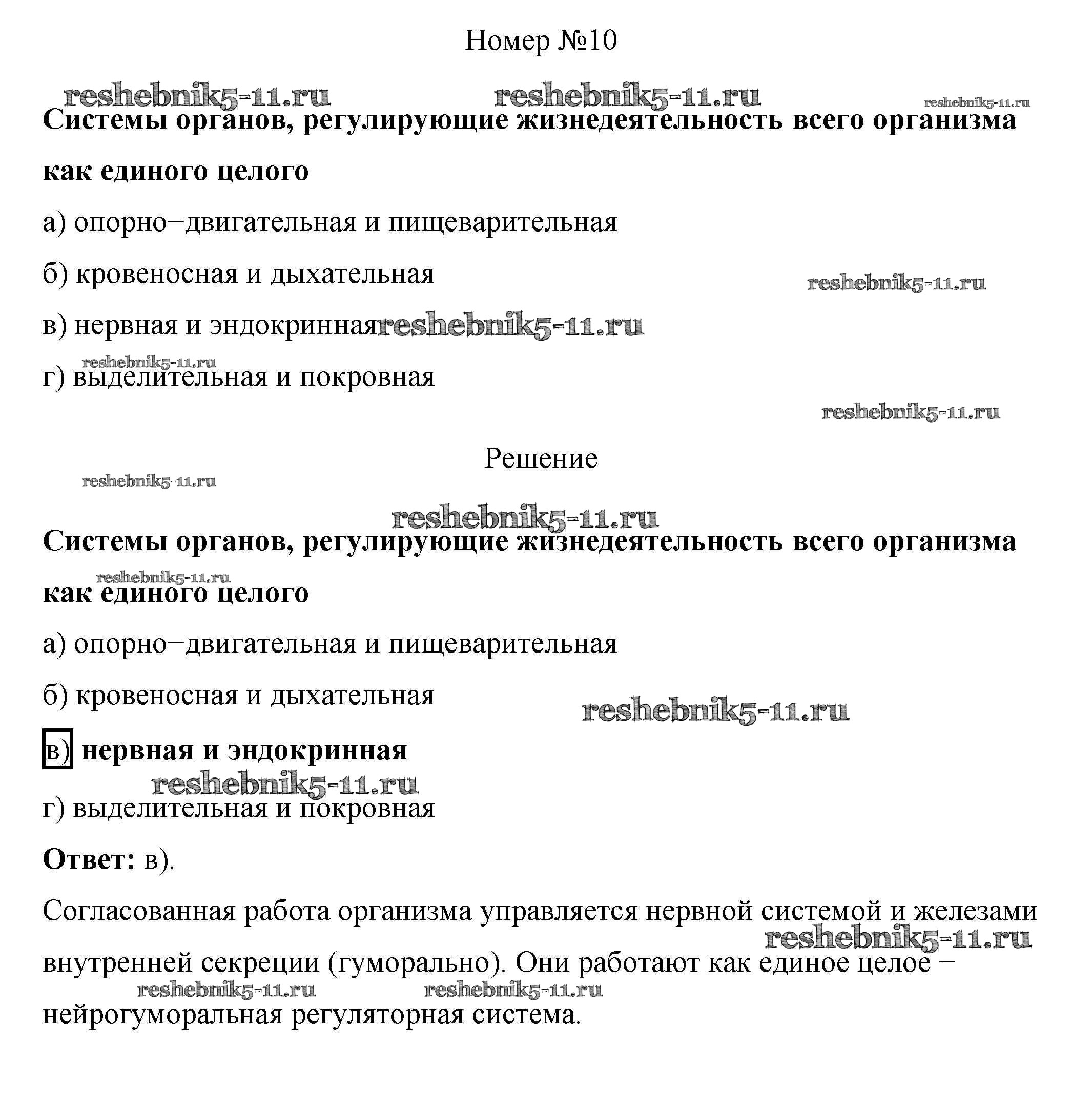 Готовая домашняя работа с ответами по Биологии за 8 класс Пасечник, Швецов Рабочая тетрадь Линия жизни Просвещение 2019 ФГОС - тестовый контроль 2 10