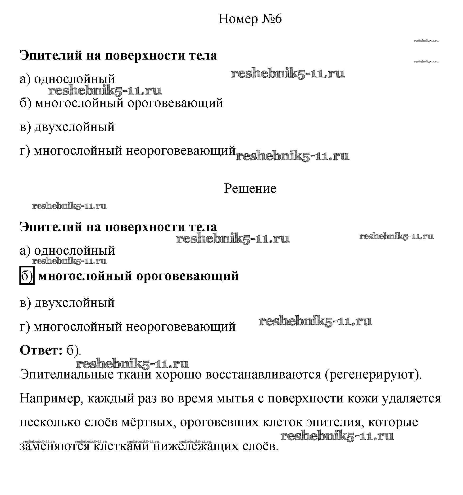 Готовая домашняя работа с ответами по Биологии за 8 класс Пасечник, Швецов Рабочая тетрадь Линия жизни Просвещение 2019 ФГОС - тестовый контроль 2 6
