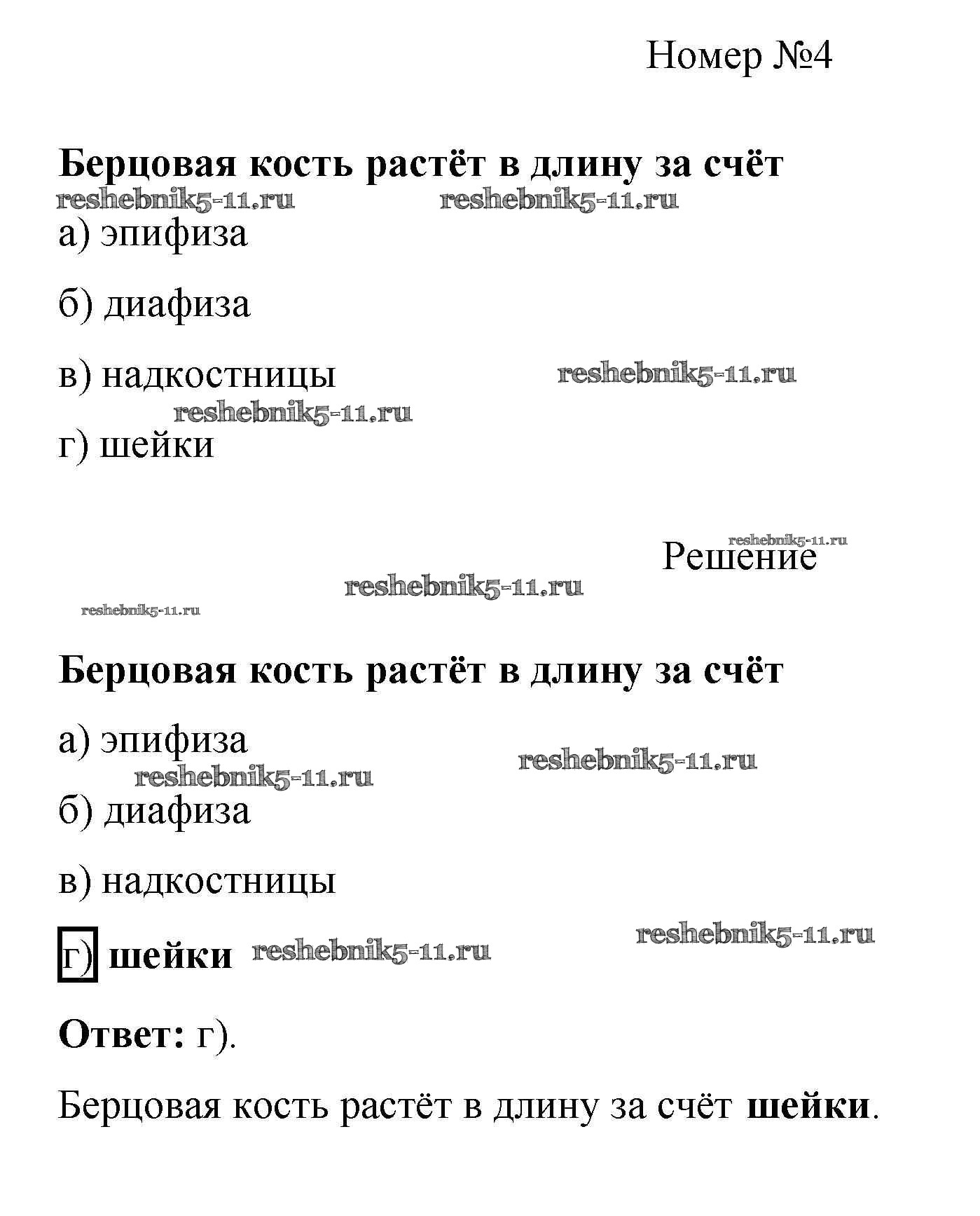 Готовая домашняя работа с ответами по Биологии за 8 класс Пасечник, Швецов Рабочая тетрадь Линия жизни Просвещение 2019 ФГОС - Тестовый контроль 3 4