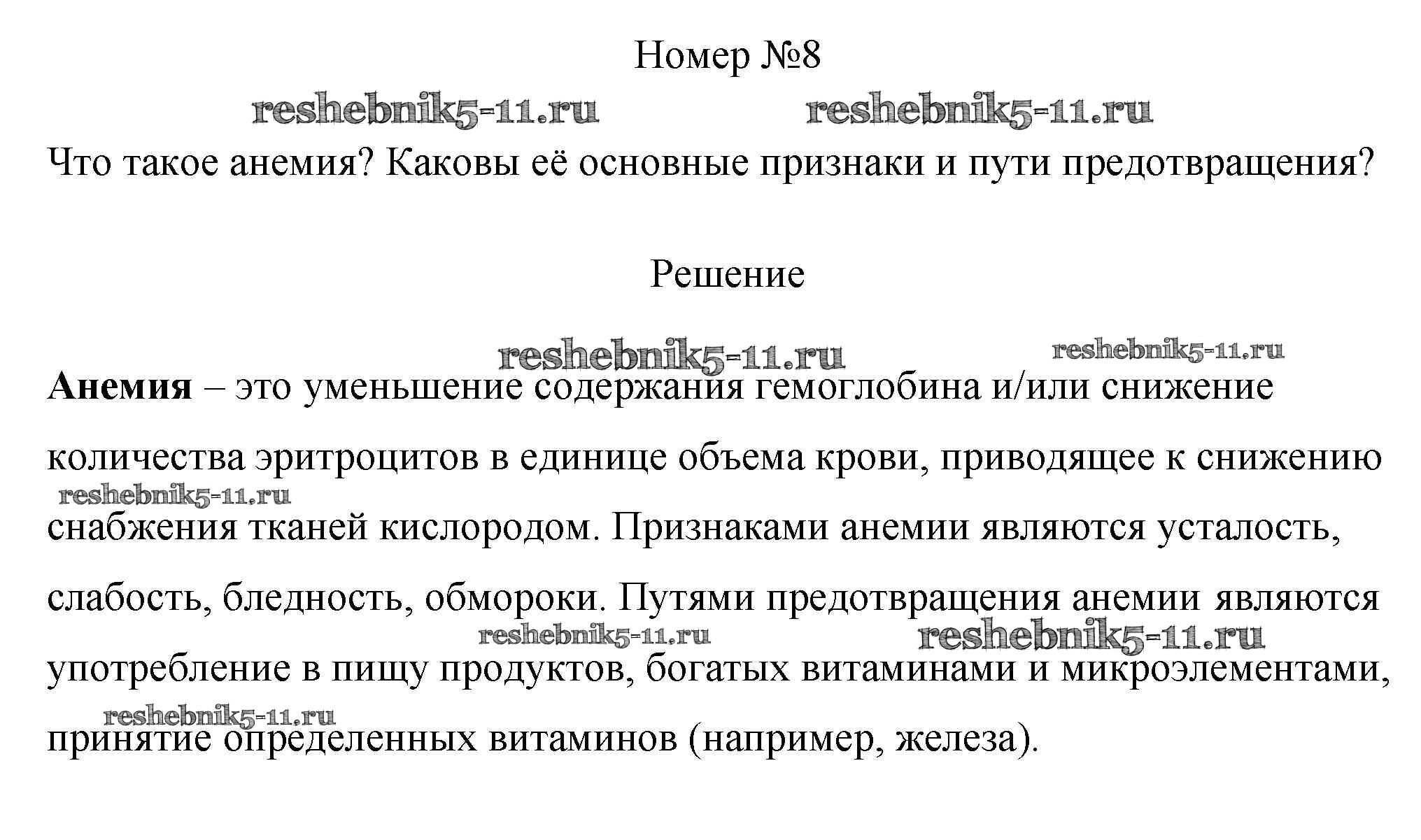 Биология за 8 класс Пасечник Рабочая тетрадь Линия жизни Просвещение §14. состав крови 8