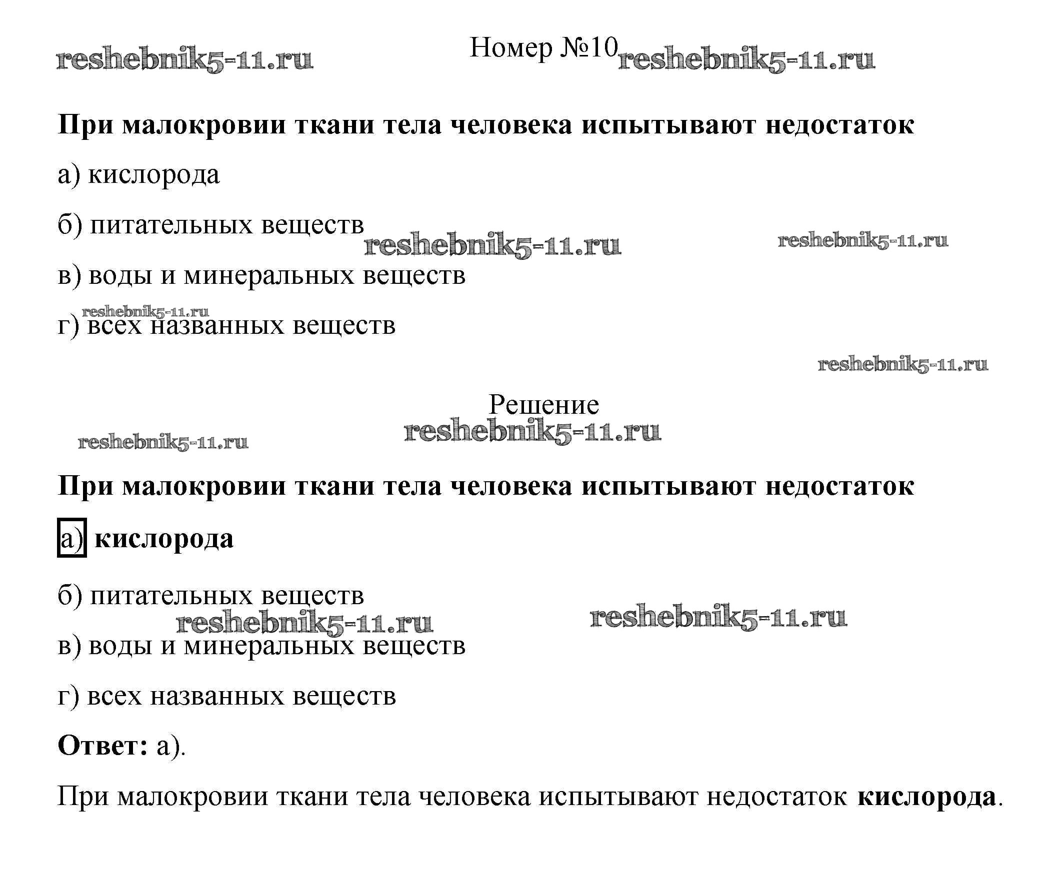 Готовая домашняя работа с ответами по Биологии за 8 класс Пасечник, Швецов Рабочая тетрадь Линия жизни Просвещение 2019 ФГОС - Тестовый контроль 4 10