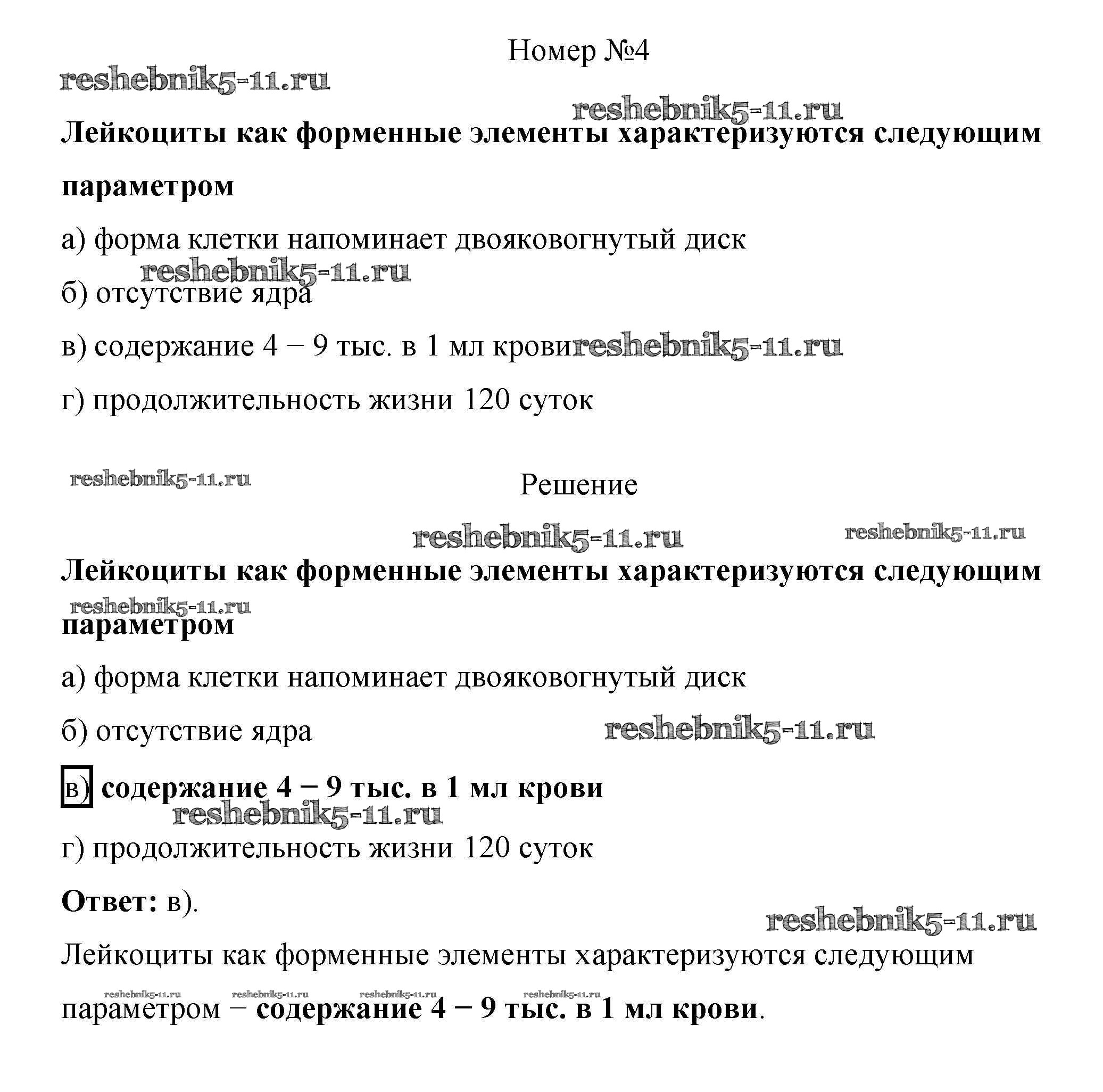 Готовая домашняя работа с ответами по Биологии за 8 класс Пасечник, Швецов Рабочая тетрадь Линия жизни Просвещение 2019 ФГОС - Тестовый контроль 4 4
