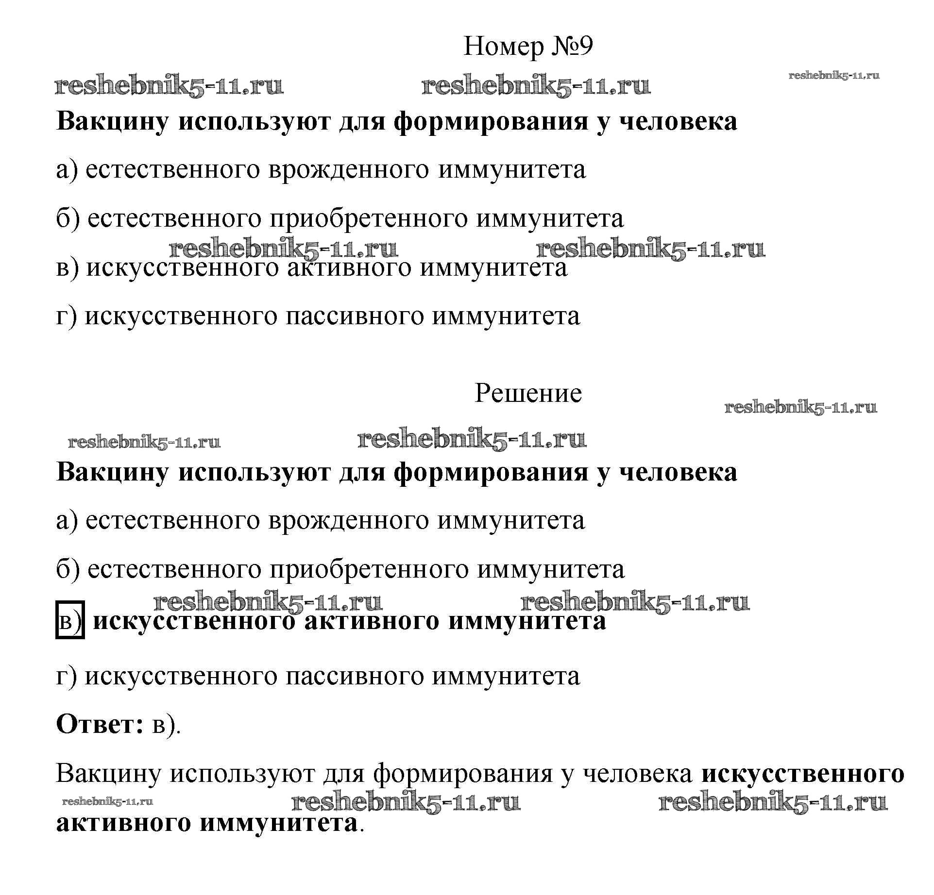 Готовая домашняя работа с ответами по Биологии за 8 класс Пасечник, Швецов Рабочая тетрадь Линия жизни Просвещение 2019 ФГОС - Тестовый контроль 4 9