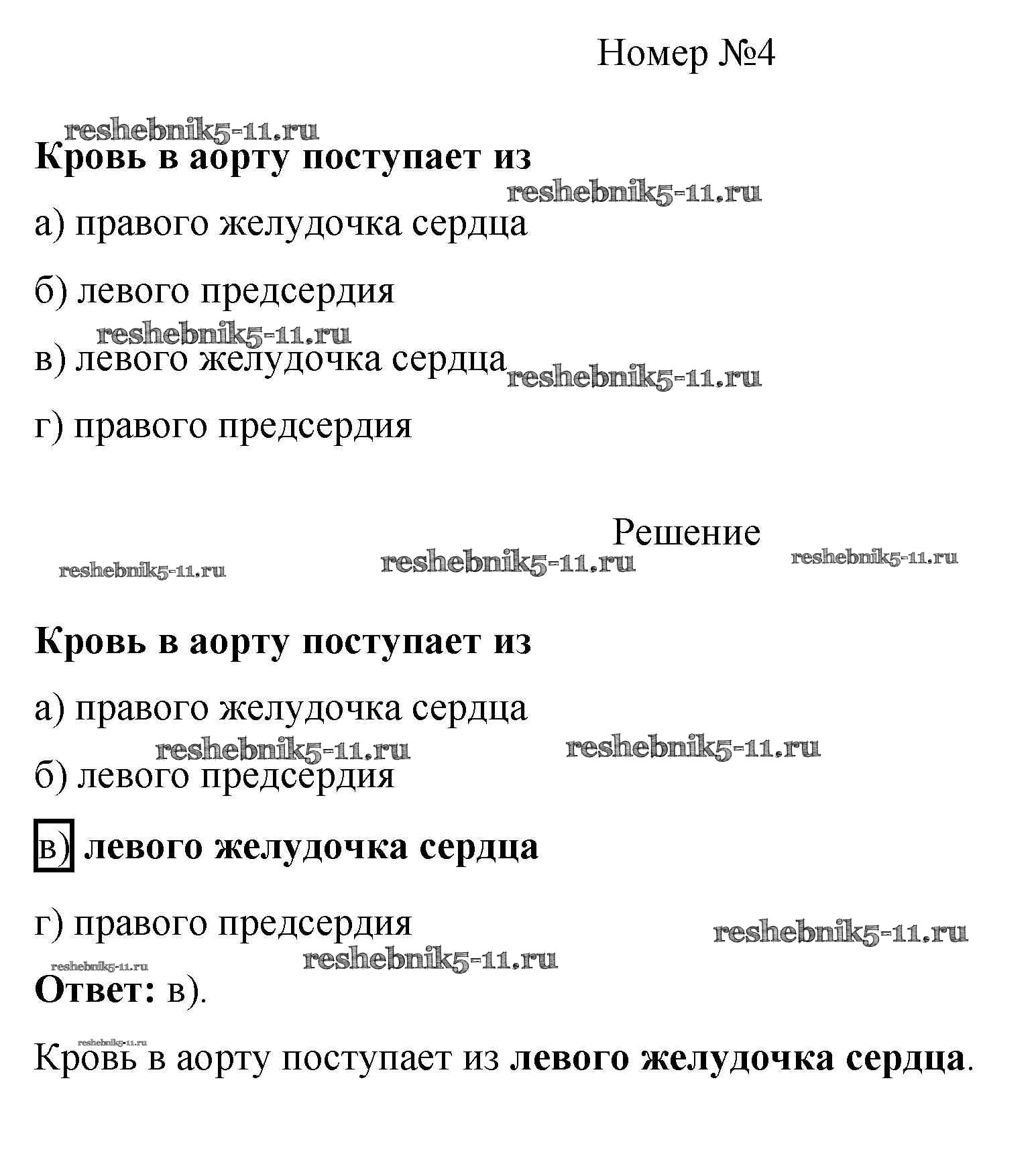 Готовая домашняя работа с ответами по Биологии за 8 класс Пасечник, Швецов Рабочая тетрадь Линия жизни Просвещение 2019 ФГОС - Тестовый контроль 5 4