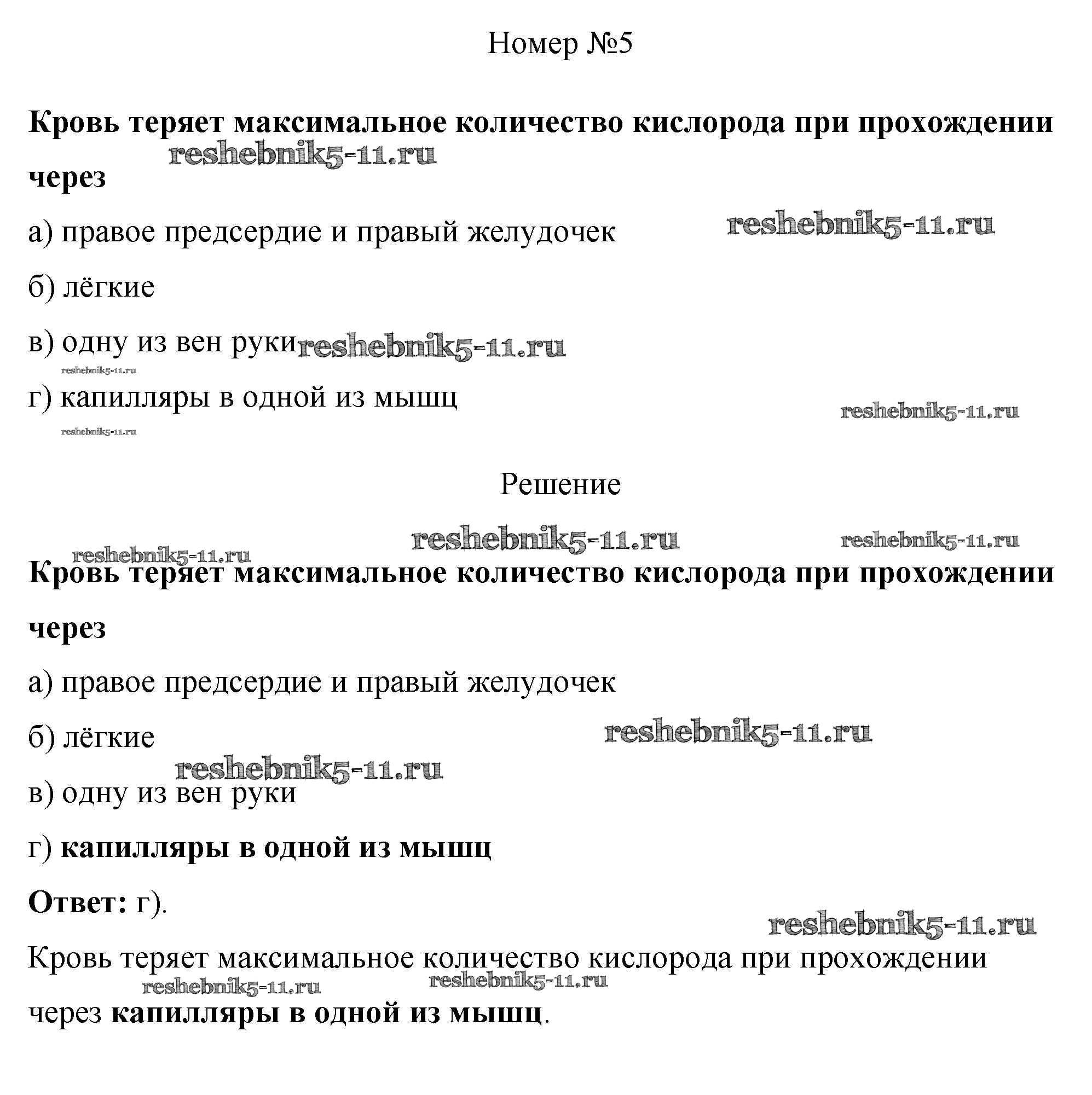 Готовая домашняя работа с ответами по Биологии за 8 класс Пасечник, Швецов Рабочая тетрадь Линия жизни Просвещение 2019 ФГОС - Тестовый контроль 5 5