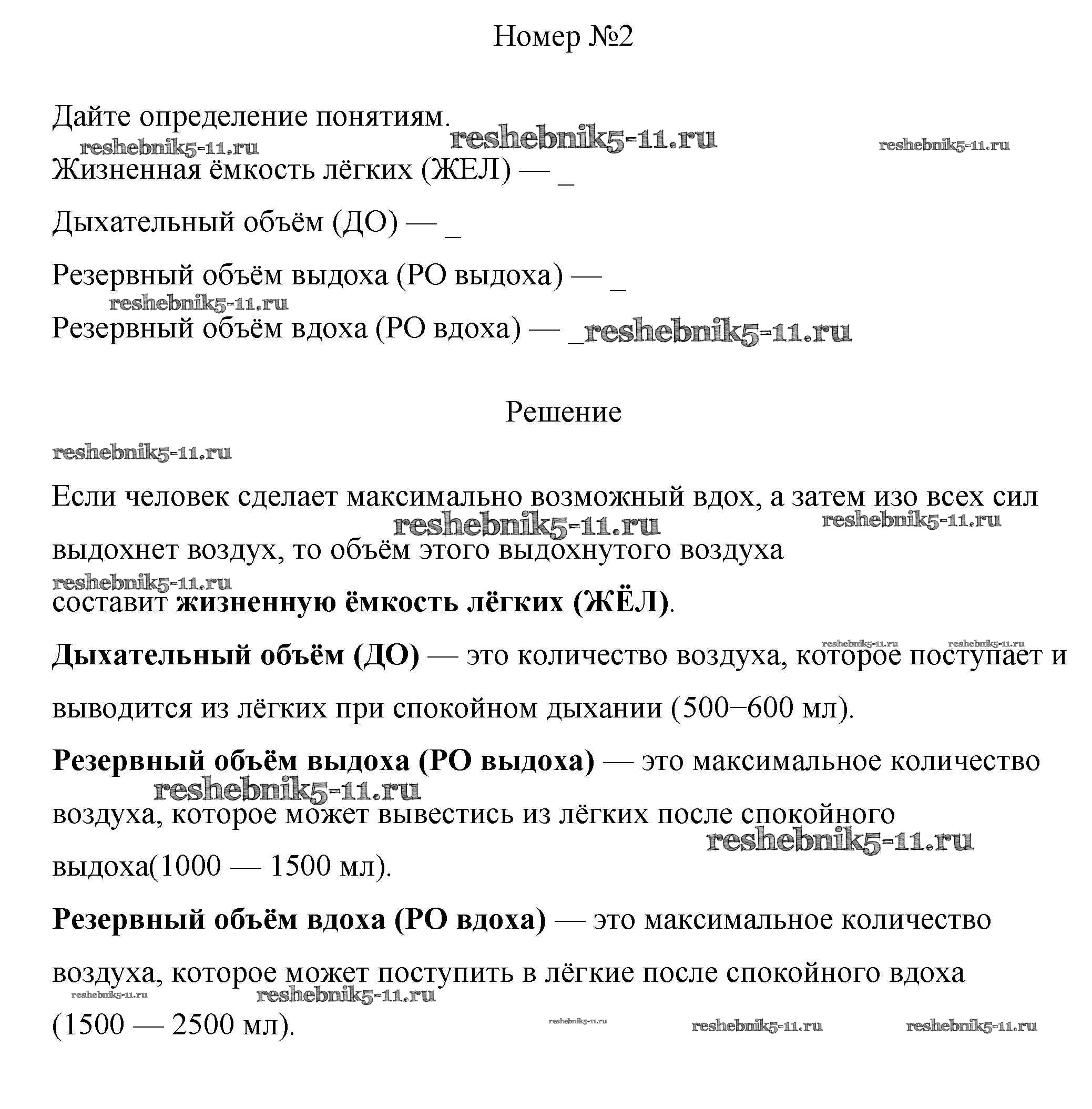 Готовая домашняя работа с ответами по Биологии за 8 класс Пасечник, Швецов Рабочая тетрадь Линия жизни Просвещение 2019 ФГОС - §21. Механизм дыхания 2