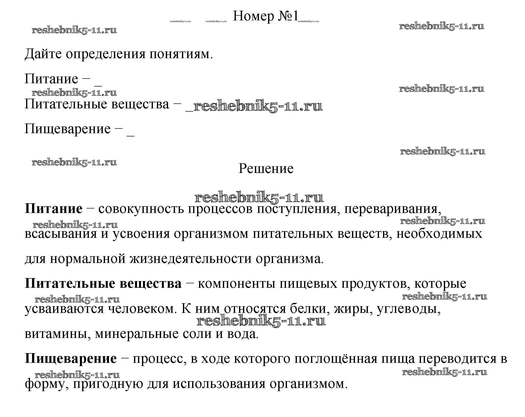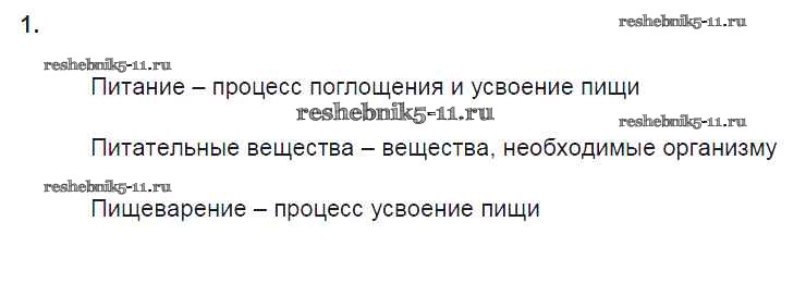 Готовая домашняя работа с ответами по Биологии за 8 класс Пасечник, Швецов Рабочая тетрадь Линия жизни Просвещение 2019 ФГОС - §24. Питание и его значение 1