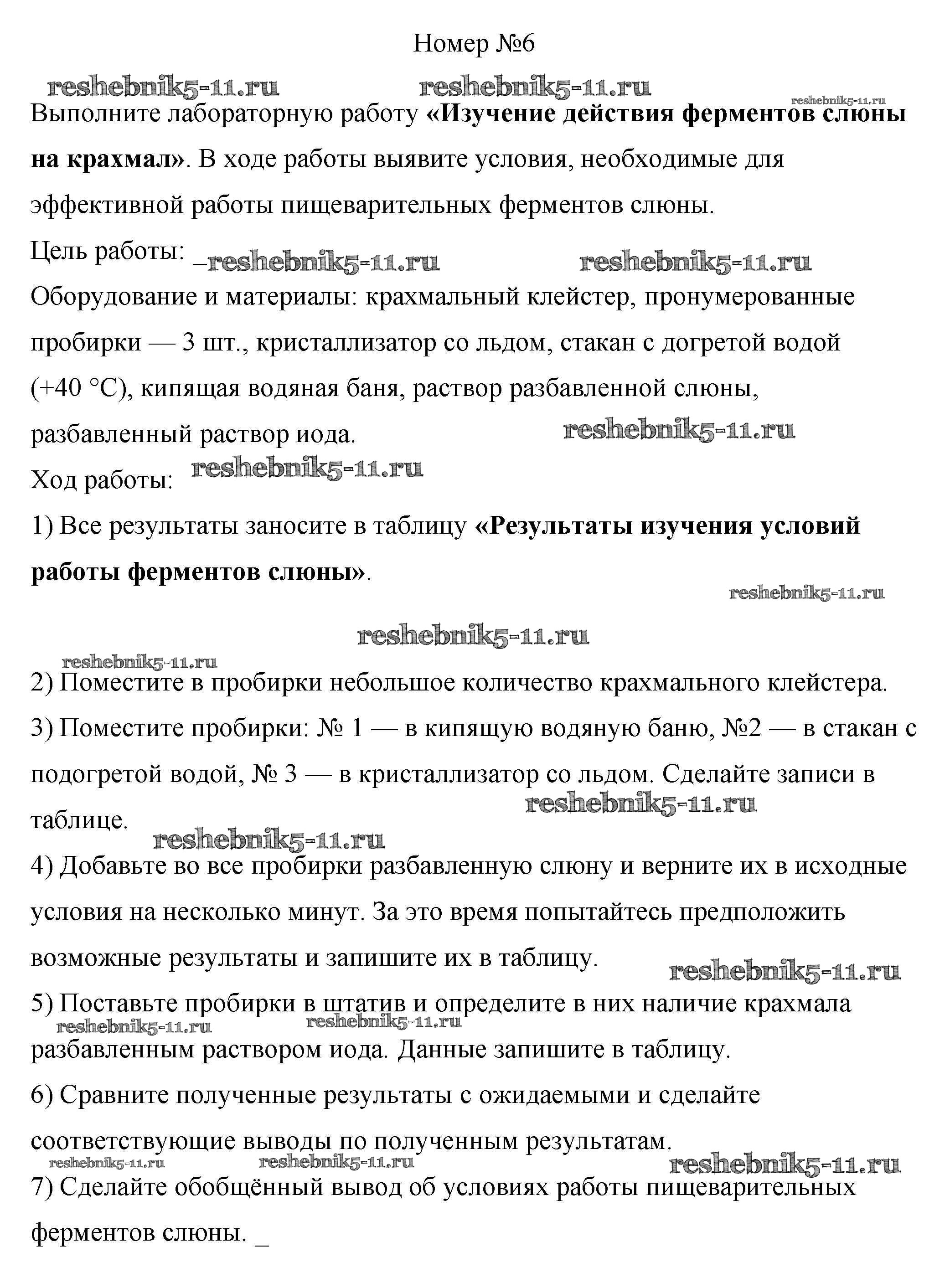 Решебник 1 / §25. пищеварение в ротовой полости / 6