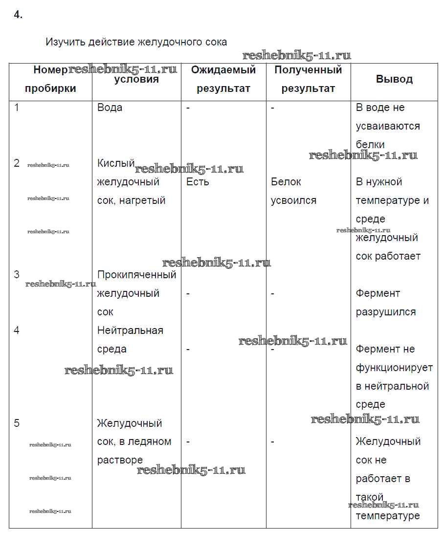 Решебник 1 / §26. пищеварение в желудке и кишечнике / 4