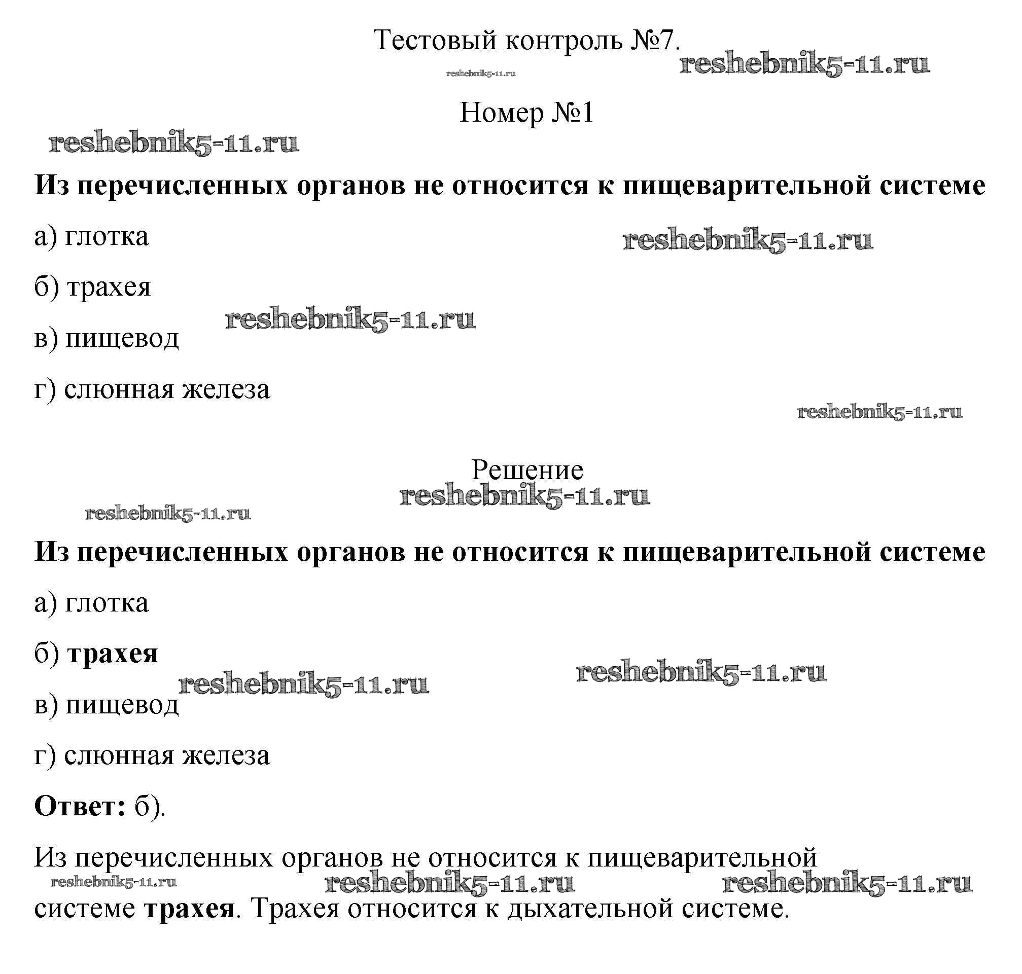 Готовая домашняя работа с ответами по Биологии за 8 класс Пасечник, Швецов Рабочая тетрадь Линия жизни Просвещение 2019 ФГОС - Тестовый контроль 7 1