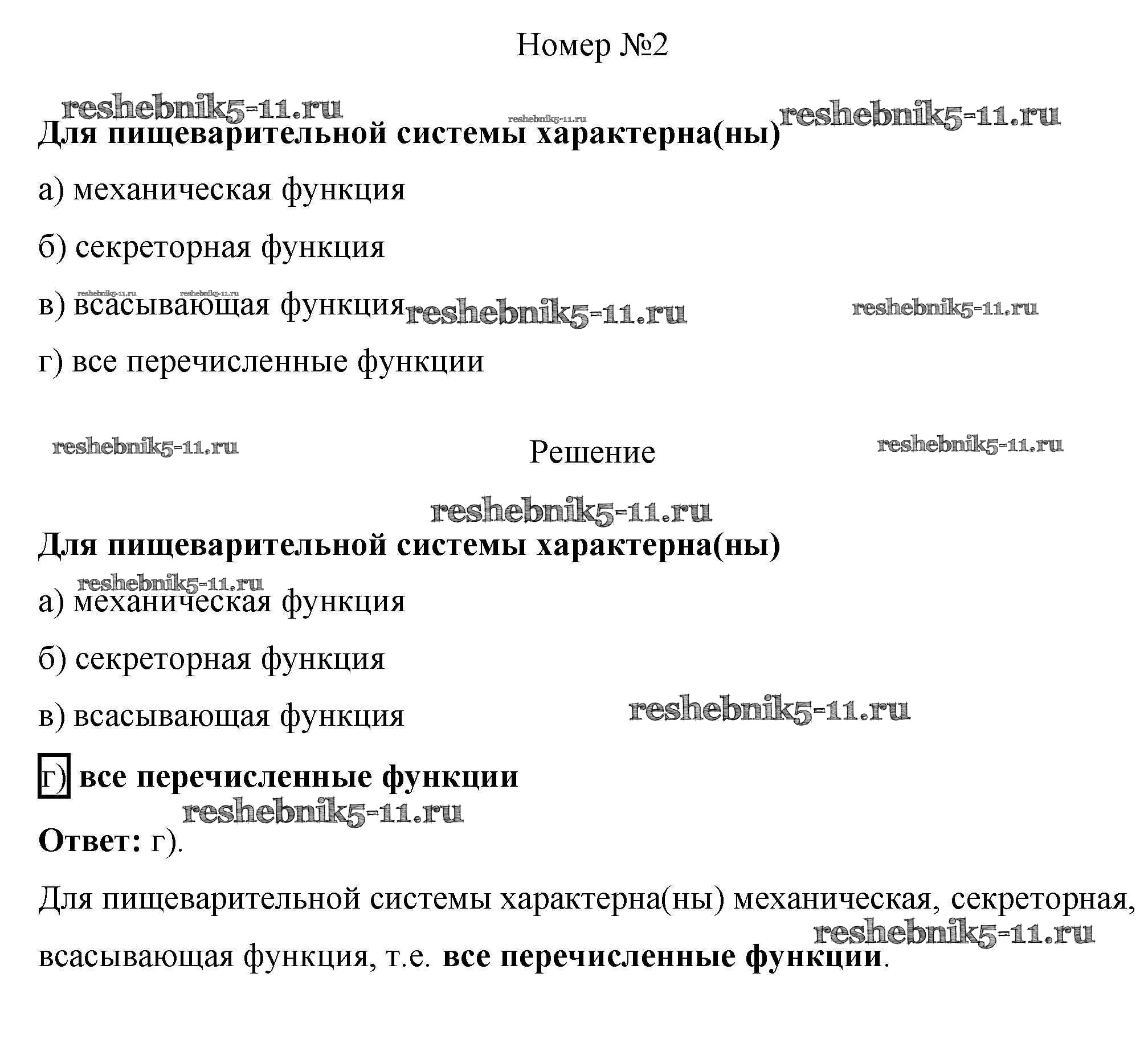 Готовая домашняя работа с ответами по Биологии за 8 класс Пасечник, Швецов Рабочая тетрадь Линия жизни Просвещение 2019 ФГОС - Тестовый контроль 7 2