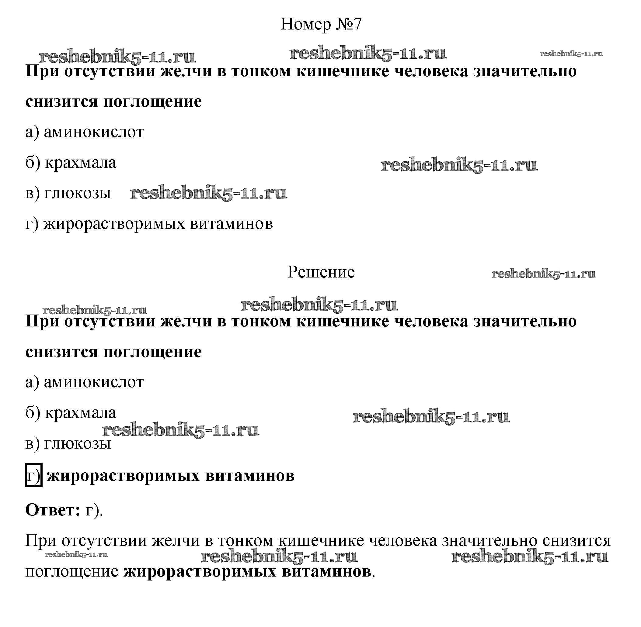 Готовая домашняя работа с ответами по Биологии за 8 класс Пасечник, Швецов Рабочая тетрадь Линия жизни Просвещение 2019 ФГОС - Тестовый контроль 7 7