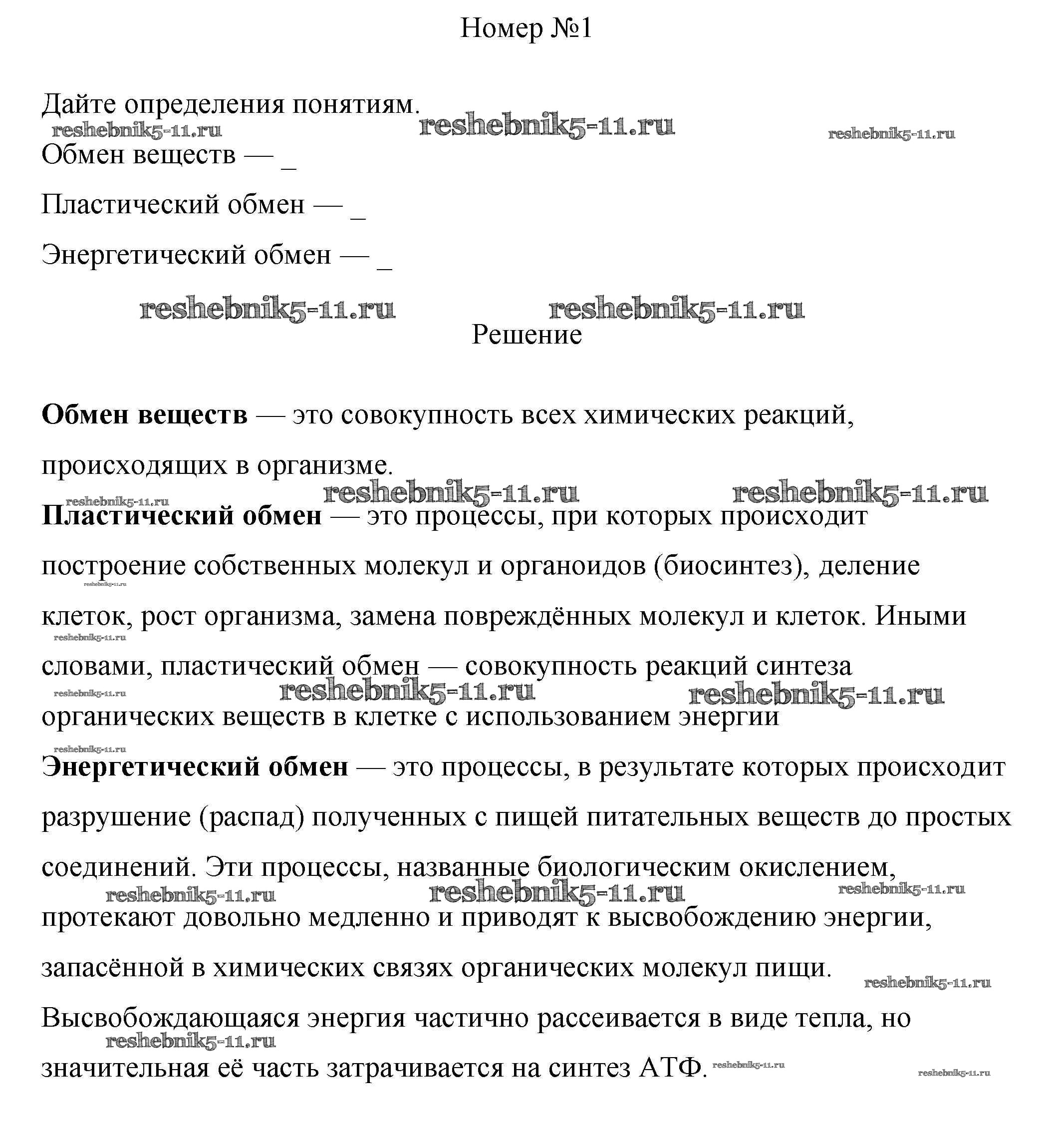 Решебник 1 / §29. пластический и энергетический обмен / 1