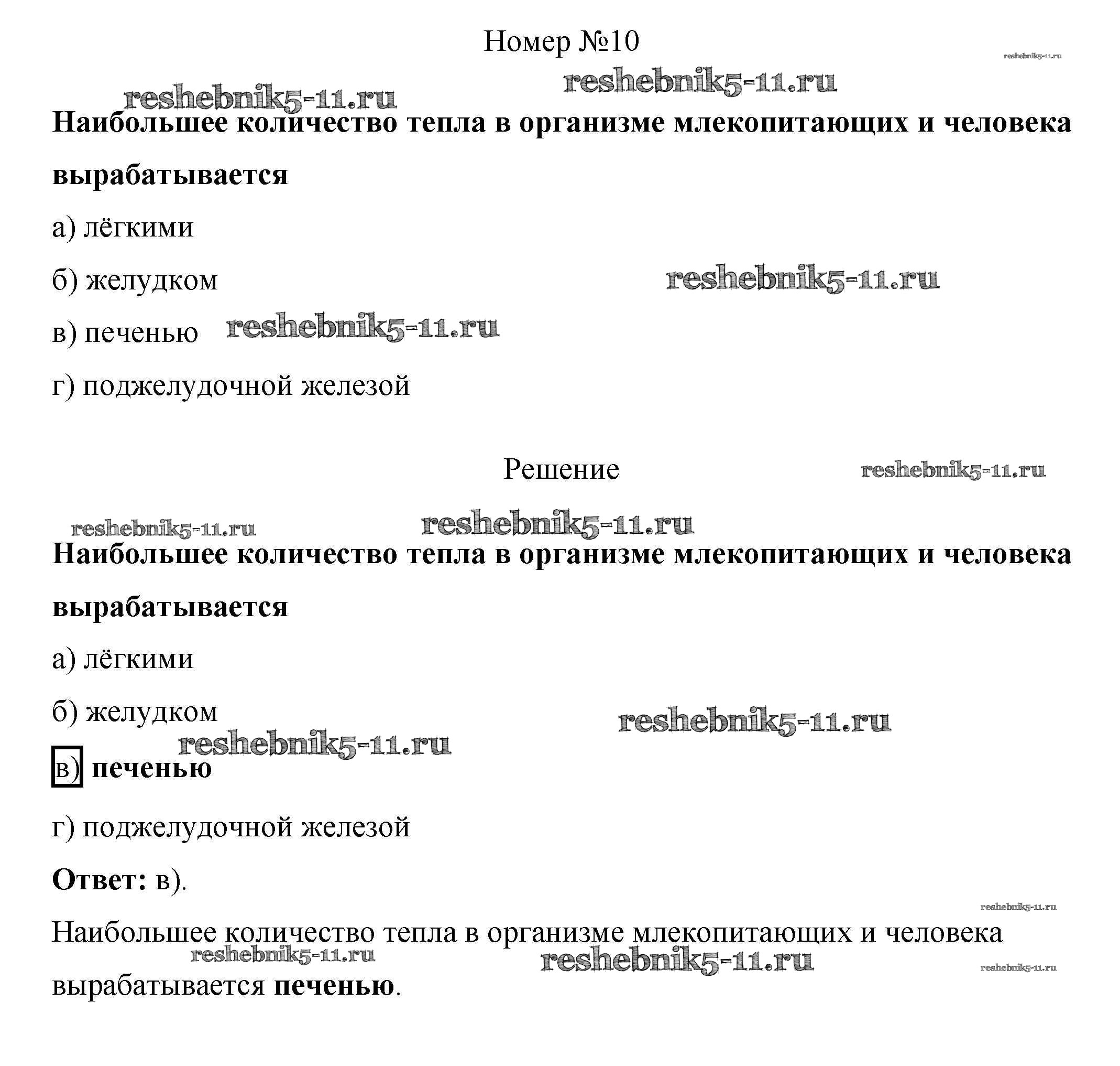 Готовая домашняя работа с ответами по Биологии за 8 класс Пасечник, Швецов Рабочая тетрадь Линия жизни Просвещение 2019 ФГОС - Тестовый контроль 8 10