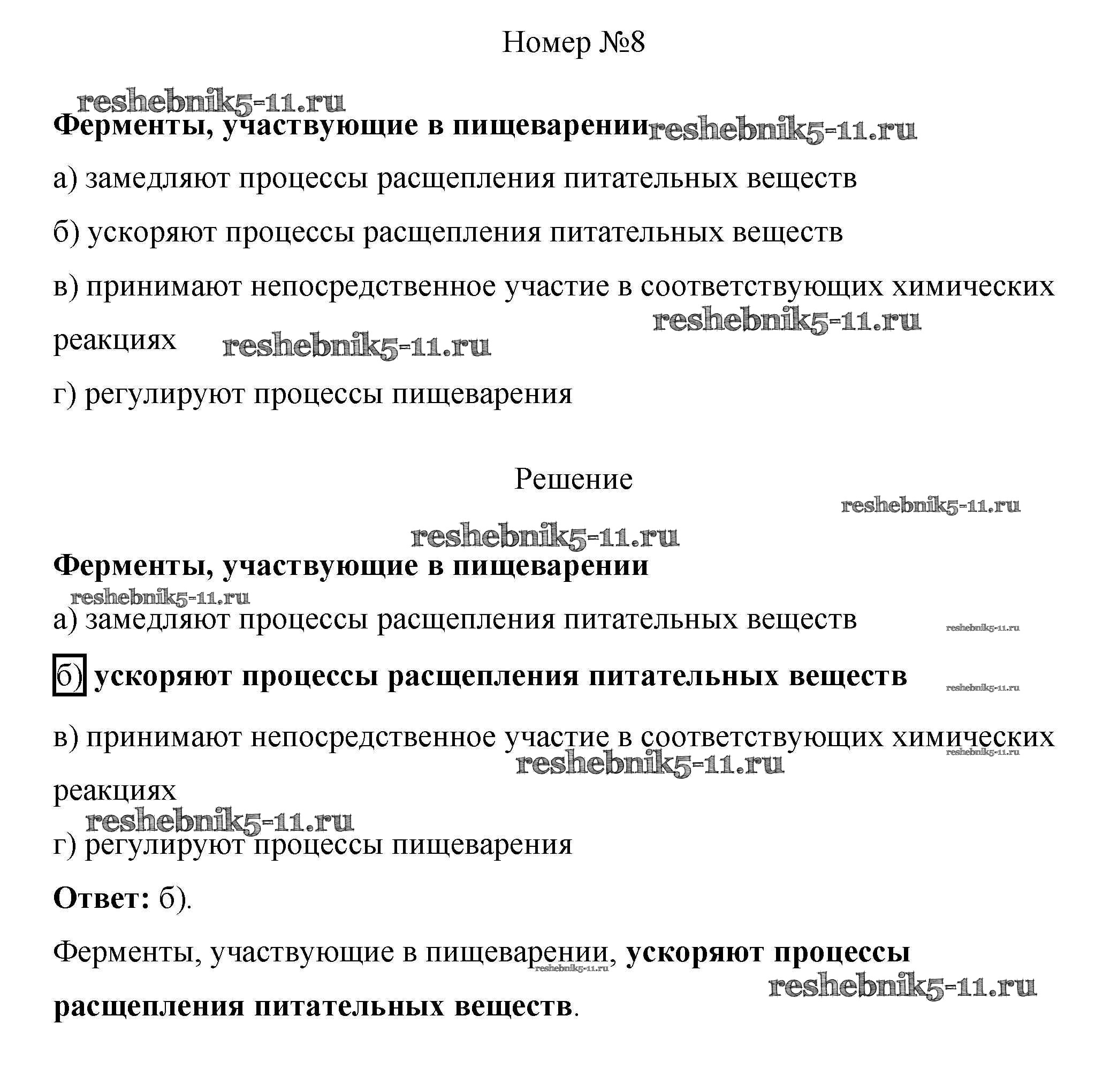 Готовая домашняя работа с ответами по Биологии за 8 класс Пасечник, Швецов Рабочая тетрадь Линия жизни Просвещение 2019 ФГОС - Тестовый контроль 8 8