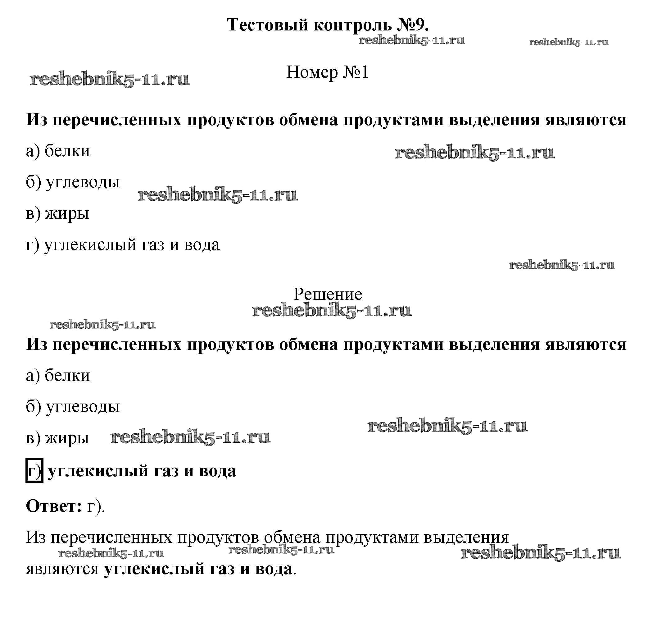 Готовая домашняя работа с ответами по Биологии за 8 класс Пасечник, Швецов Рабочая тетрадь Линия жизни Просвещение 2019 ФГОС - Тестовый контроль 9 1