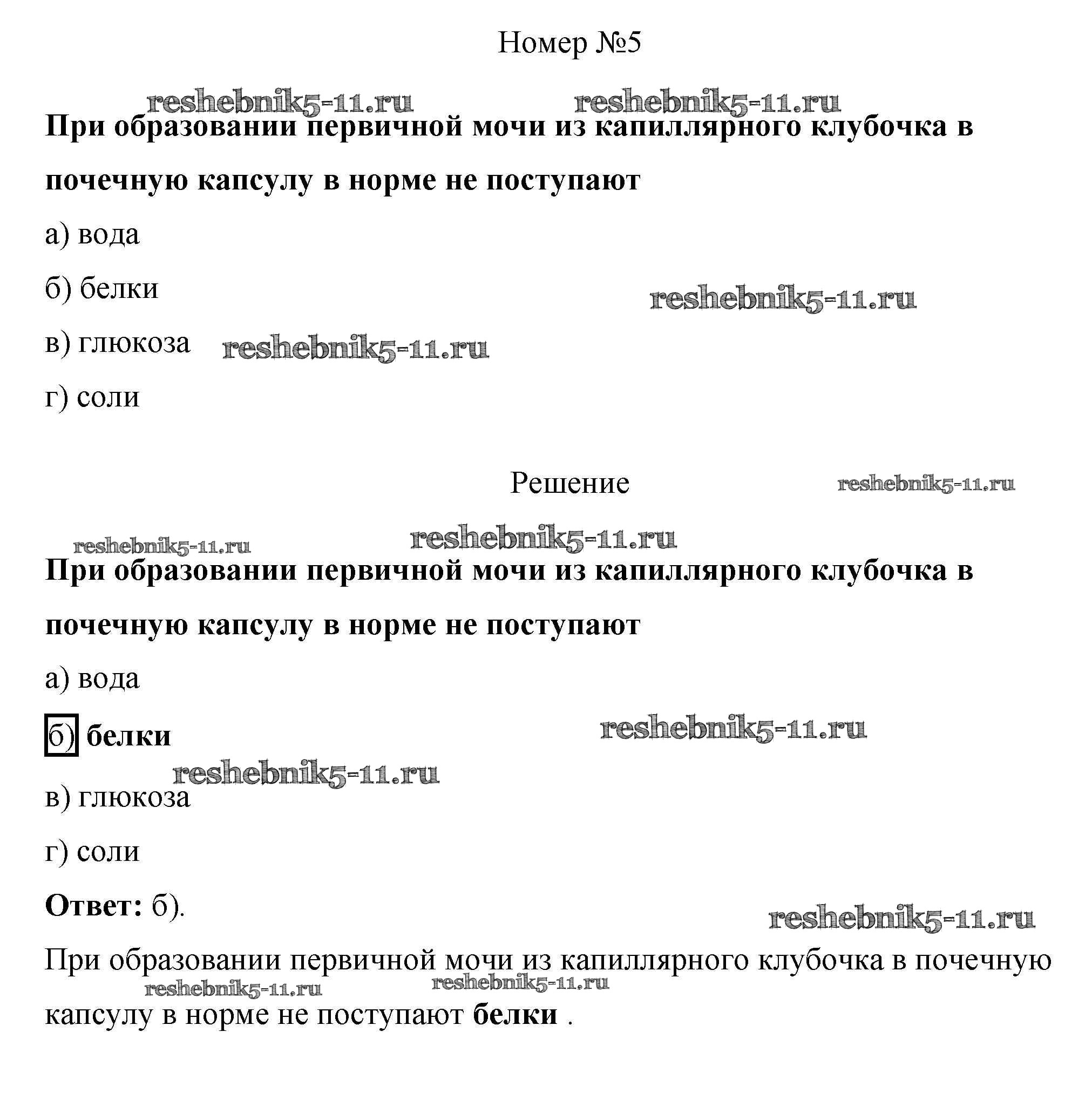 Готовая домашняя работа с ответами по Биологии за 8 класс Пасечник, Швецов Рабочая тетрадь Линия жизни Просвещение 2019 ФГОС - Тестовый контроль 9 5
