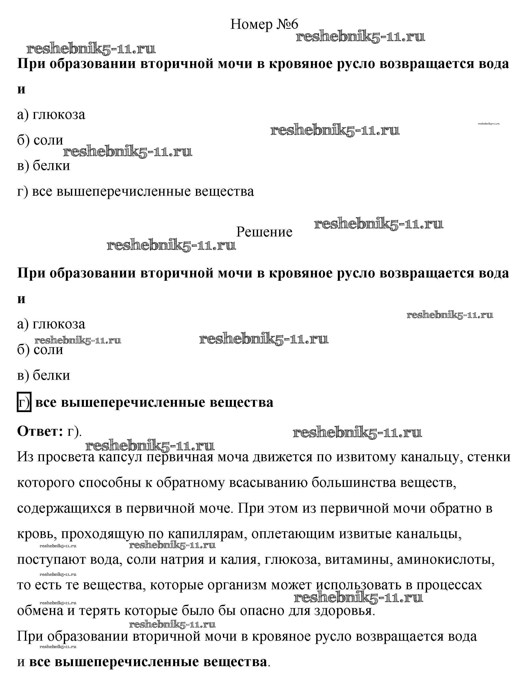 Готовая домашняя работа с ответами по Биологии за 8 класс Пасечник, Швецов Рабочая тетрадь Линия жизни Просвещение 2019 ФГОС - Тестовый контроль 9 6