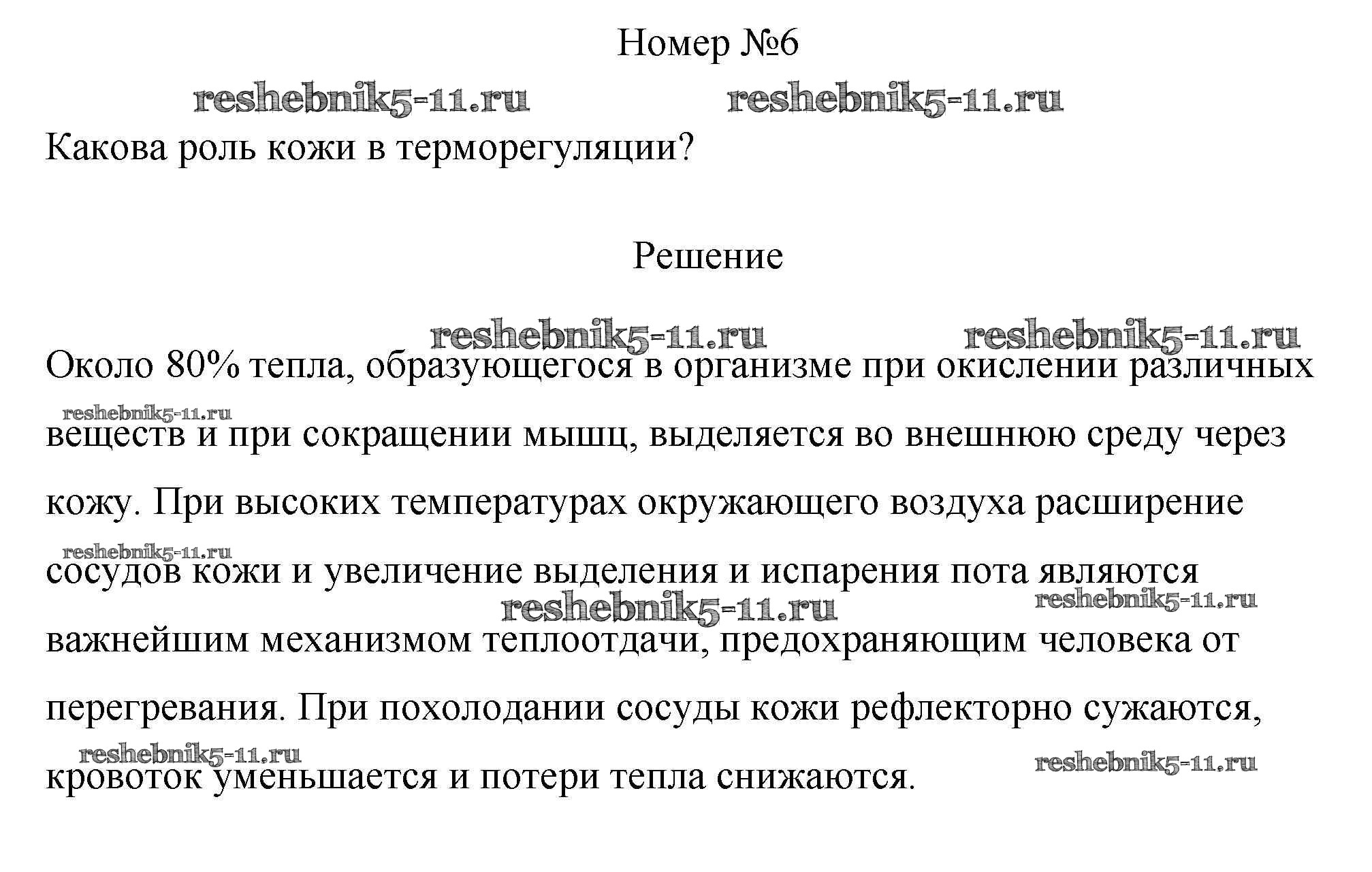 Готовая домашняя работа с ответами по Биологии за 8 класс Пасечник, Швецов Рабочая тетрадь Линия жизни Просвещение 2019 ФГОС - §35. Наружные покровы тела 6