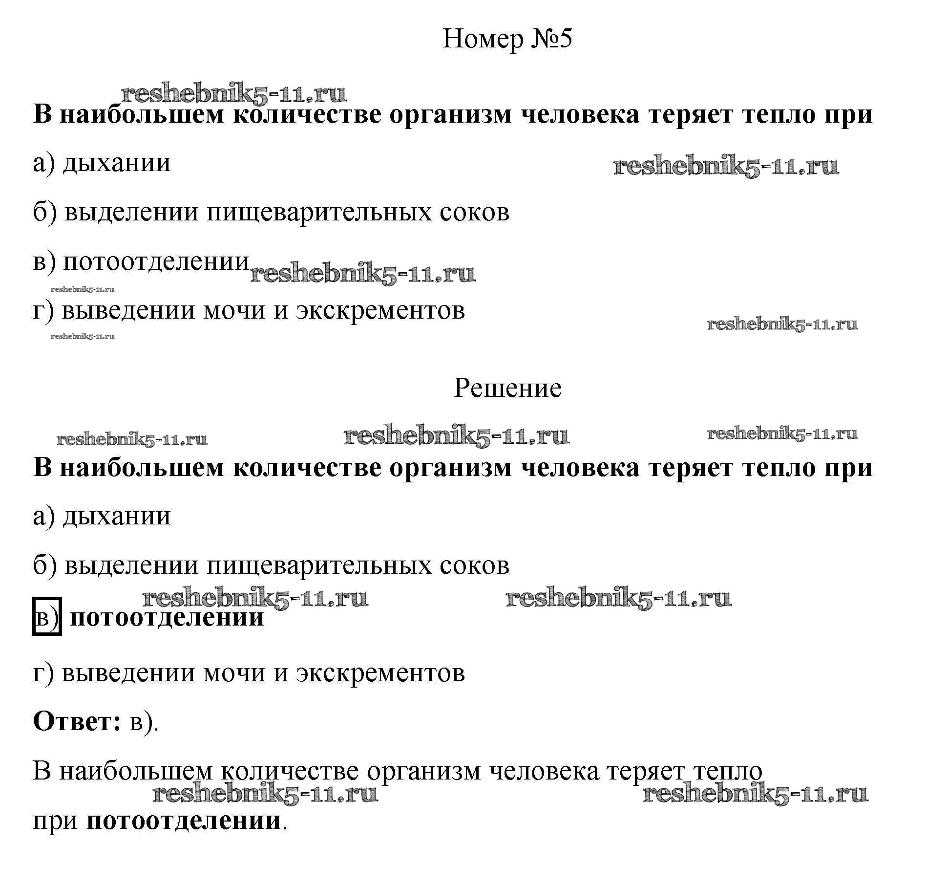 Готовая домашняя работа с ответами по Биологии за 8 класс Пасечник, Швецов Рабочая тетрадь Линия жизни Просвещение 2019 ФГОС - Тестовый контроль 10 5