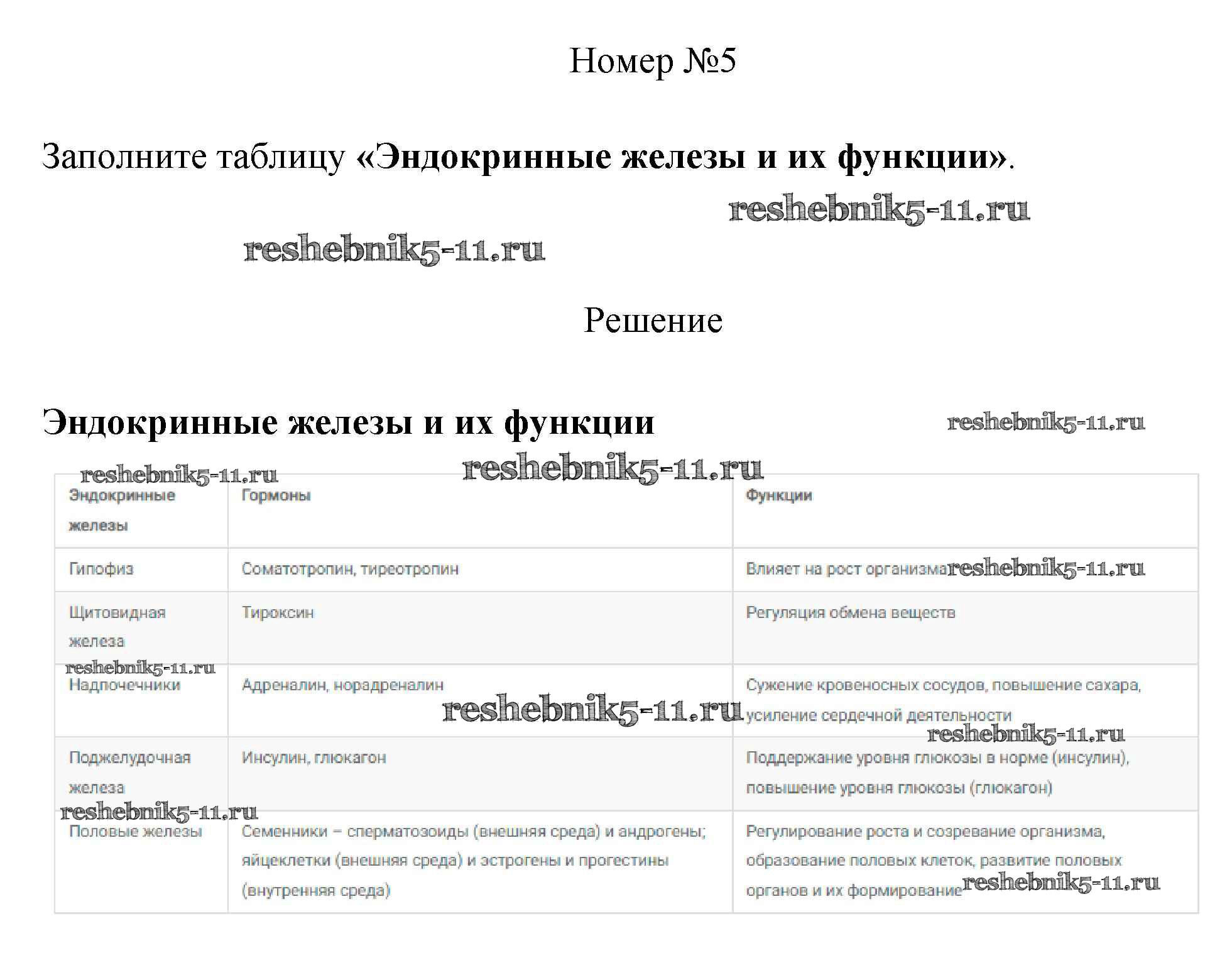 Решебник 1 / §38. железы внутренней секреции и их функции / 5