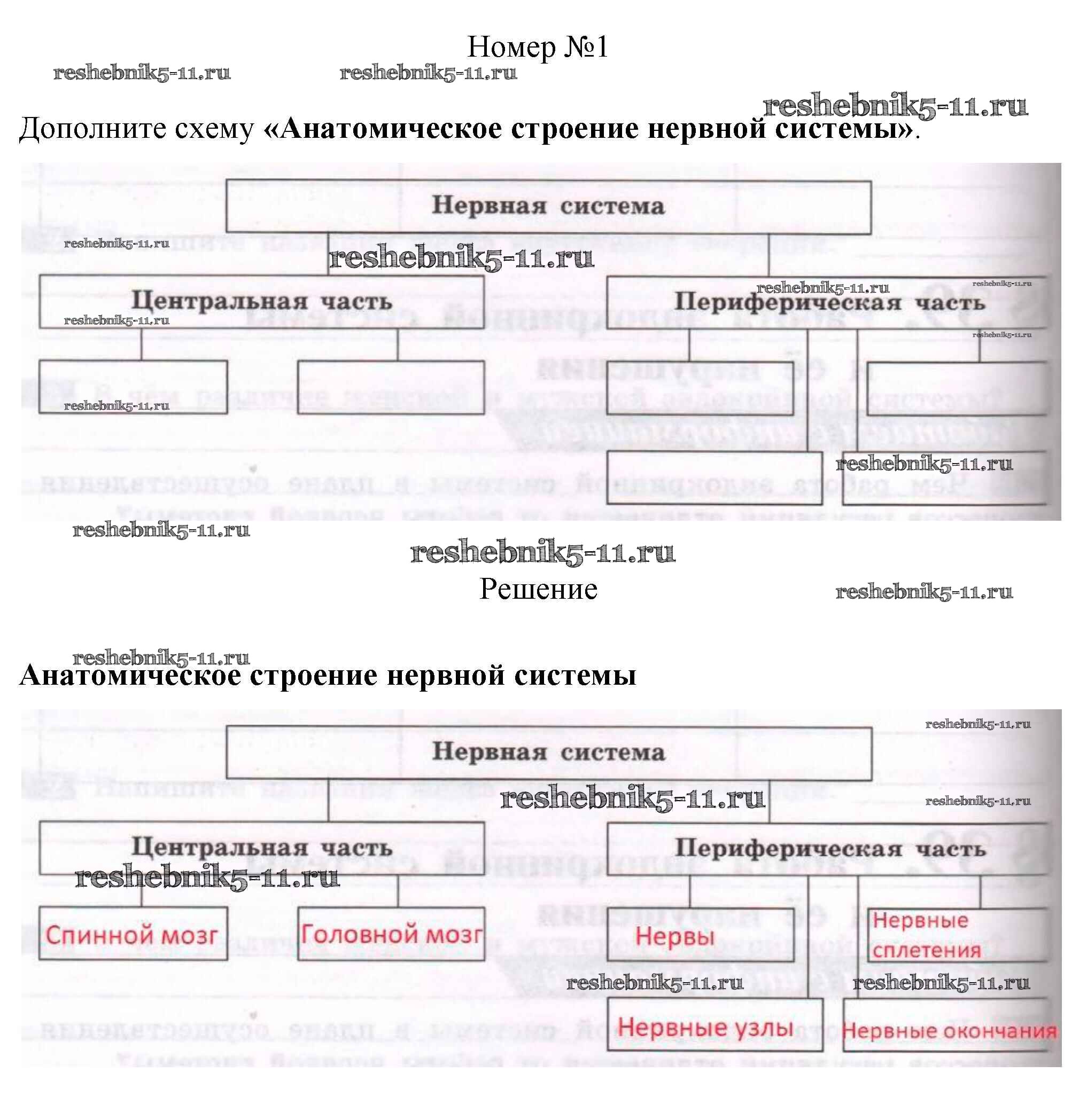 Готовая домашняя работа с ответами по Биологии за 8 класс Пасечник, Швецов Рабочая тетрадь Линия жизни Просвещение 2019 ФГОС - §40. Строение нервной системы 1