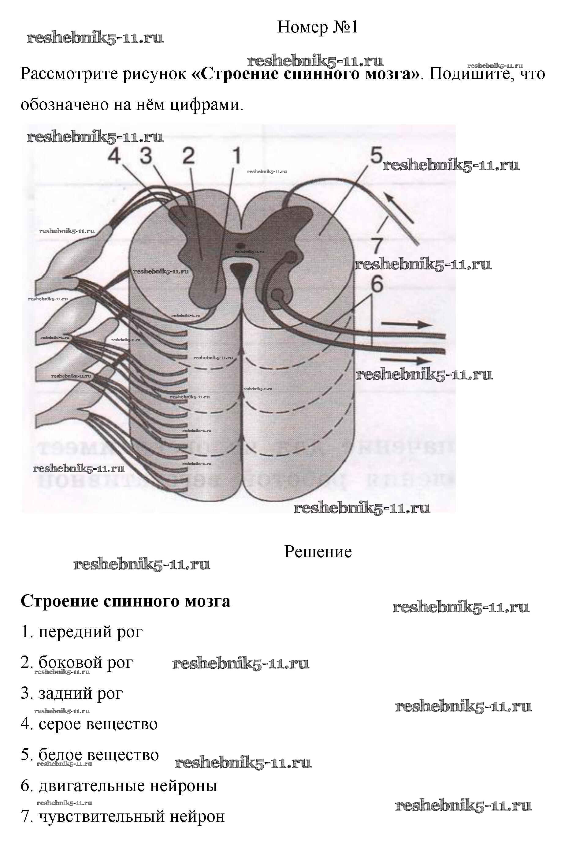 Готовая домашняя работа с ответами по Биологии за 8 класс Пасечник, Швецов Рабочая тетрадь Линия жизни Просвещение 2019 ФГОС - §41. Спинной мозг 1