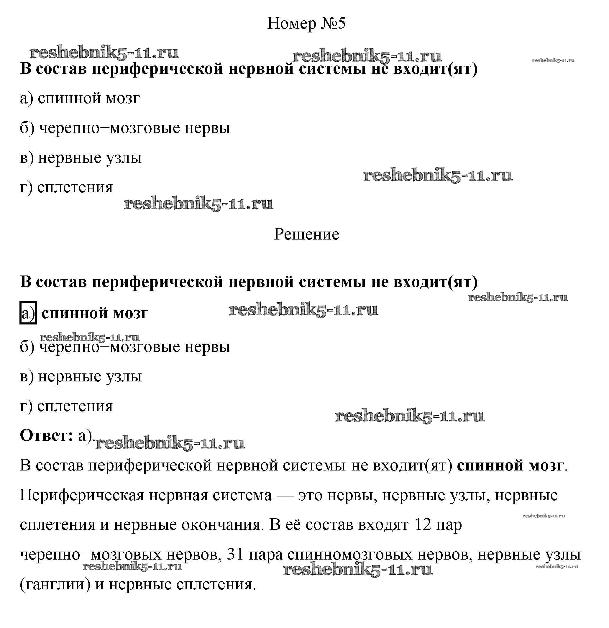 Готовая домашняя работа с ответами по Биологии за 8 класс Пасечник, Швецов Рабочая тетрадь Линия жизни Просвещение 2019 ФГОС - Тестовый контроль 11 5