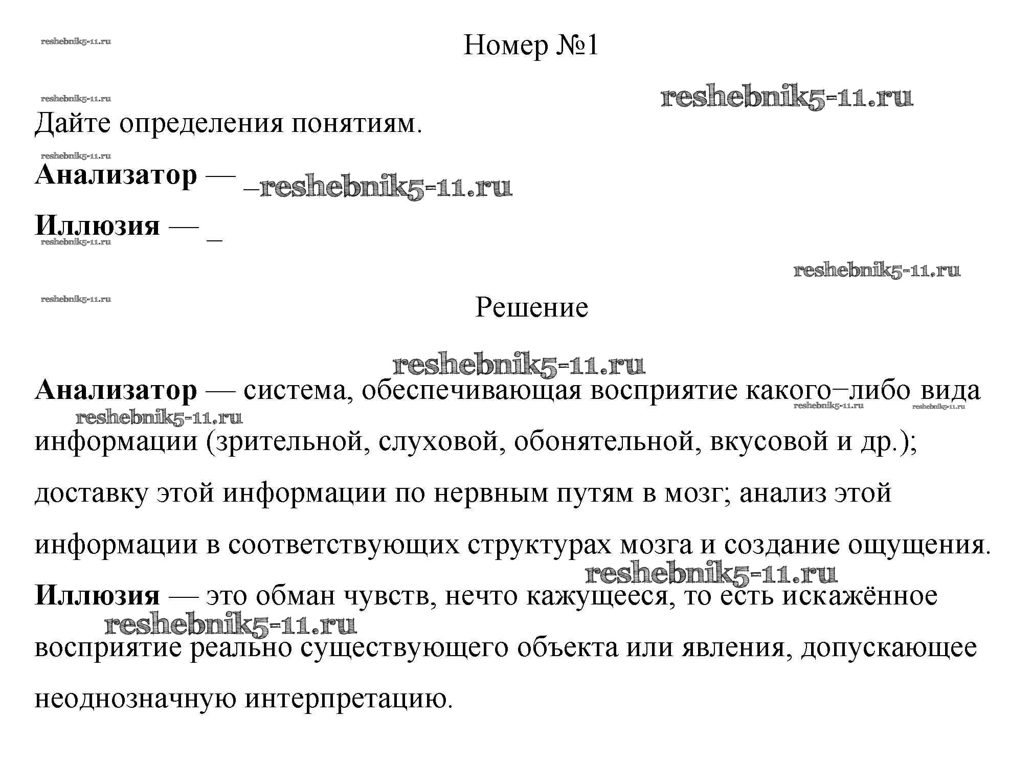 Готовая домашняя работа с ответами по Биологии за 8 класс Пасечник, Швецов Рабочая тетрадь Линия жизни Просвещение 2019 ФГОС - §45. Понятие об анализаторах 1